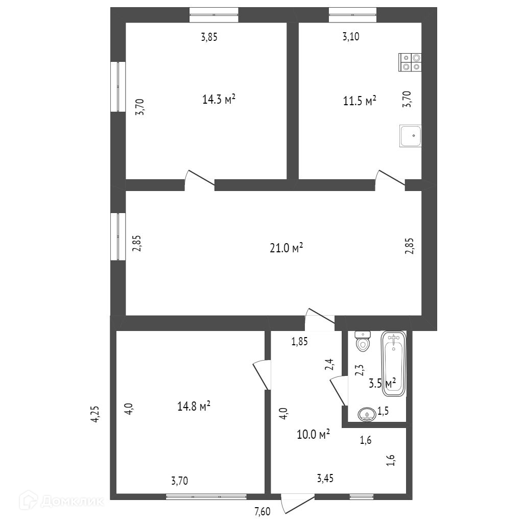 Общая площадь 127.6 м2