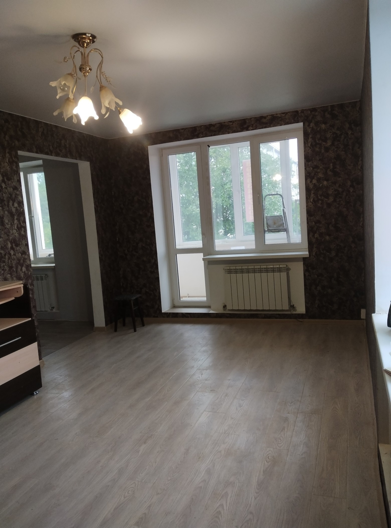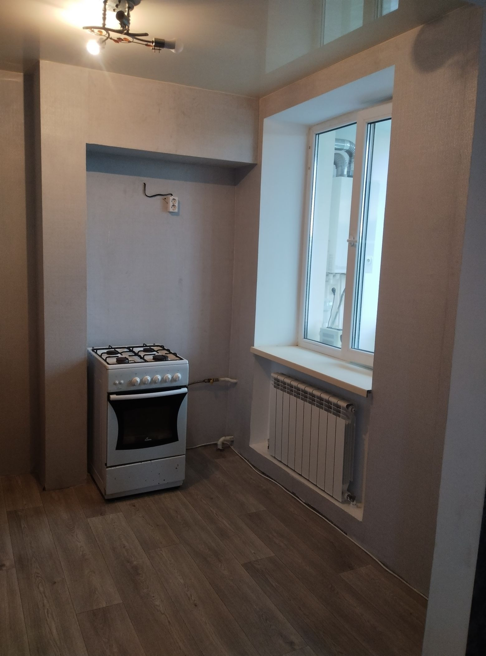 В квартире выполнен хороший ремонт. Натяжные потолки, на полу ламинат. Индивидуальное отопление. Утеплена лоджия. Санузел совместный.