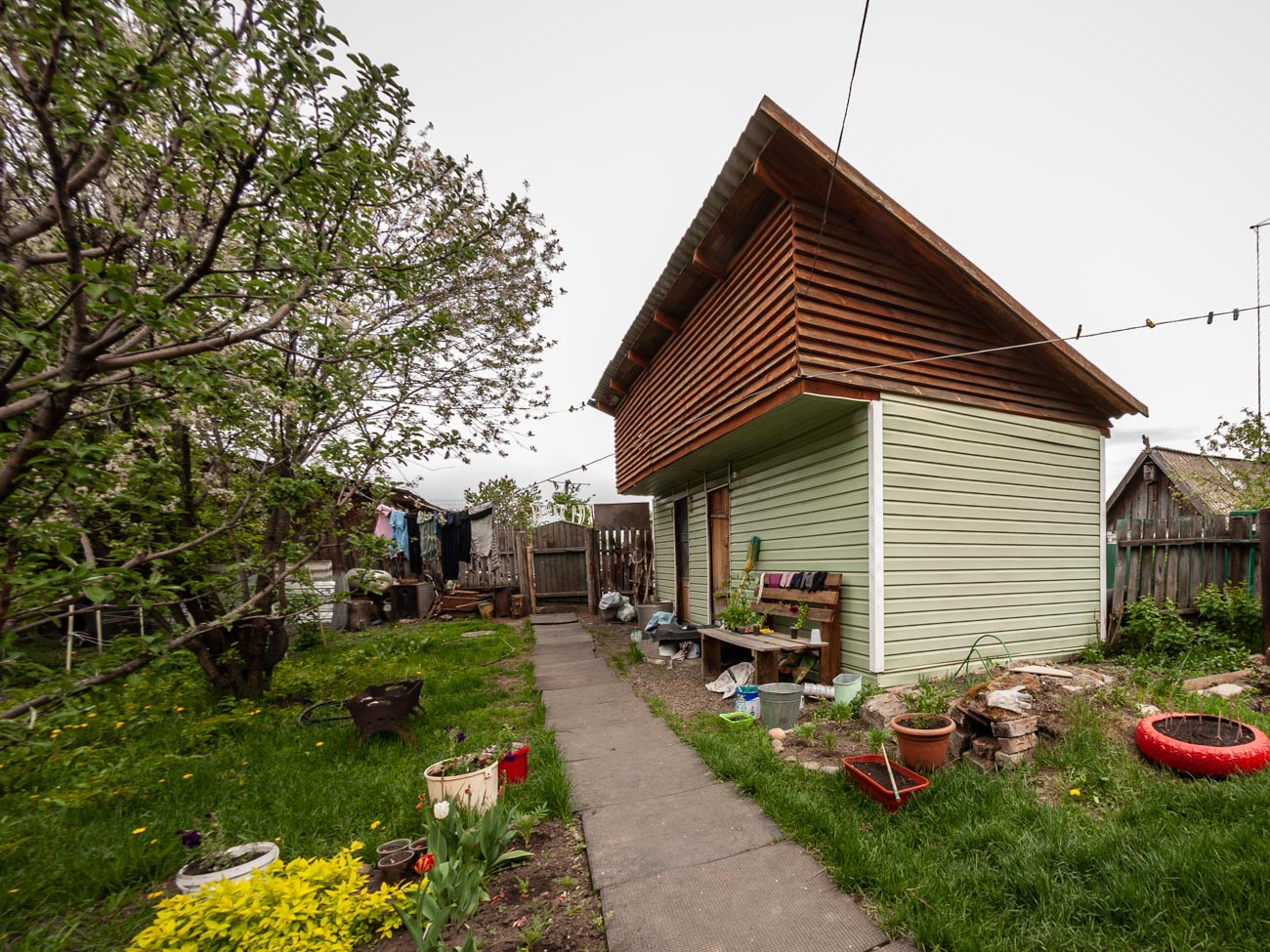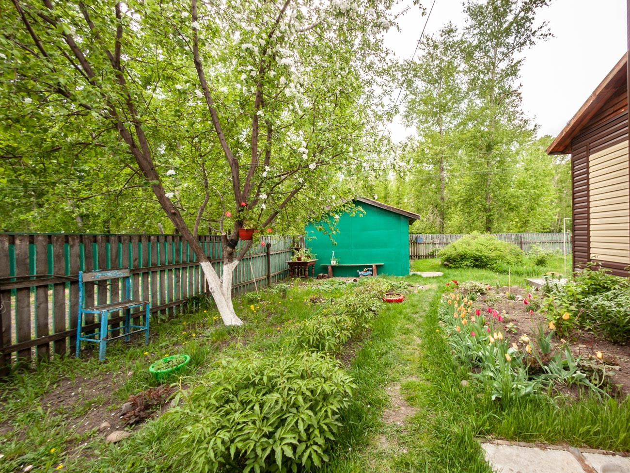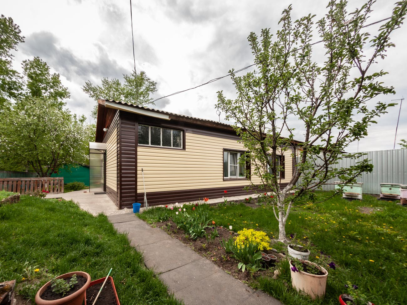 Ухоженный участок и плодородный огород, произрастают плодовые деревья и кустарники. Площадь участка -  10,66 соток. На участке есть баня, гараж, хоз. постройки, погреб для хранения овощей.