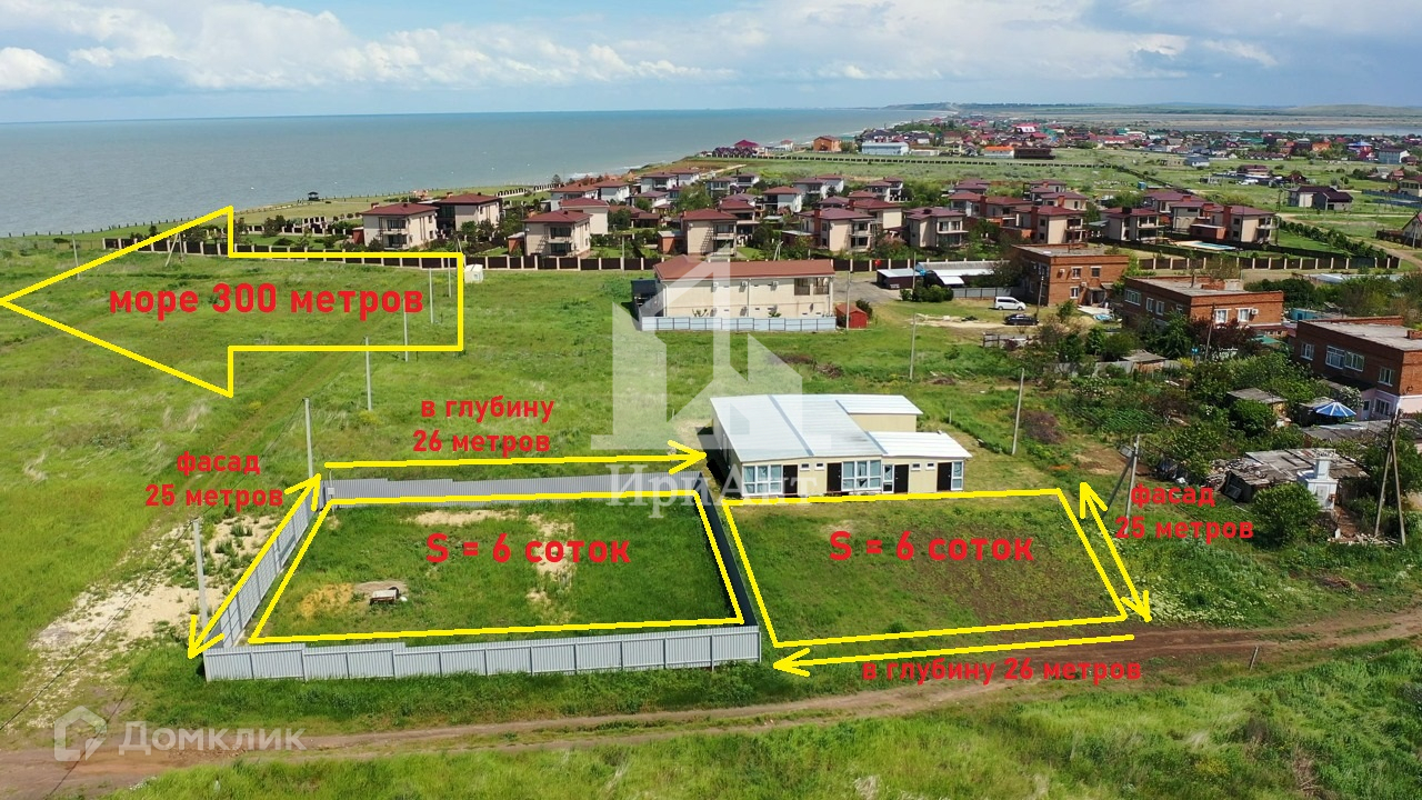 В пос. За Родину продается участок 6 соток. Вид разрешённого использования: земли населенных пунктов ЛПХ. Фасада 25 метров и 26 метров глубина. Коммуникации: газ проходит по меже, свет, вода заведены на участок, канализация септик установлен. Участок огорожен профнастилом, есть ворота и калитка. На участке имеются плодовые деревья. Расстояние до песочного пляжа Азовского моря 300 метров. Можно приобрести рядом участок 6 соток. Прекрасное место для проживания или ведения гостиничного бизнеса. В шаговой доступности школа, магазины, детский сад, остановка общественного транспорта. Улица активно развивается, строятся  дома, гостиницы. В ближайшей окрестности три грязевых вулкана, славящиеся своими лечебными свойствами. Рядом Ахтанизовский лиман с мировой достопримечательностью - долиной лотосов, там же и отличная рыбалка. Звоните! Торг возможен! Показ по предварительной договоренности.