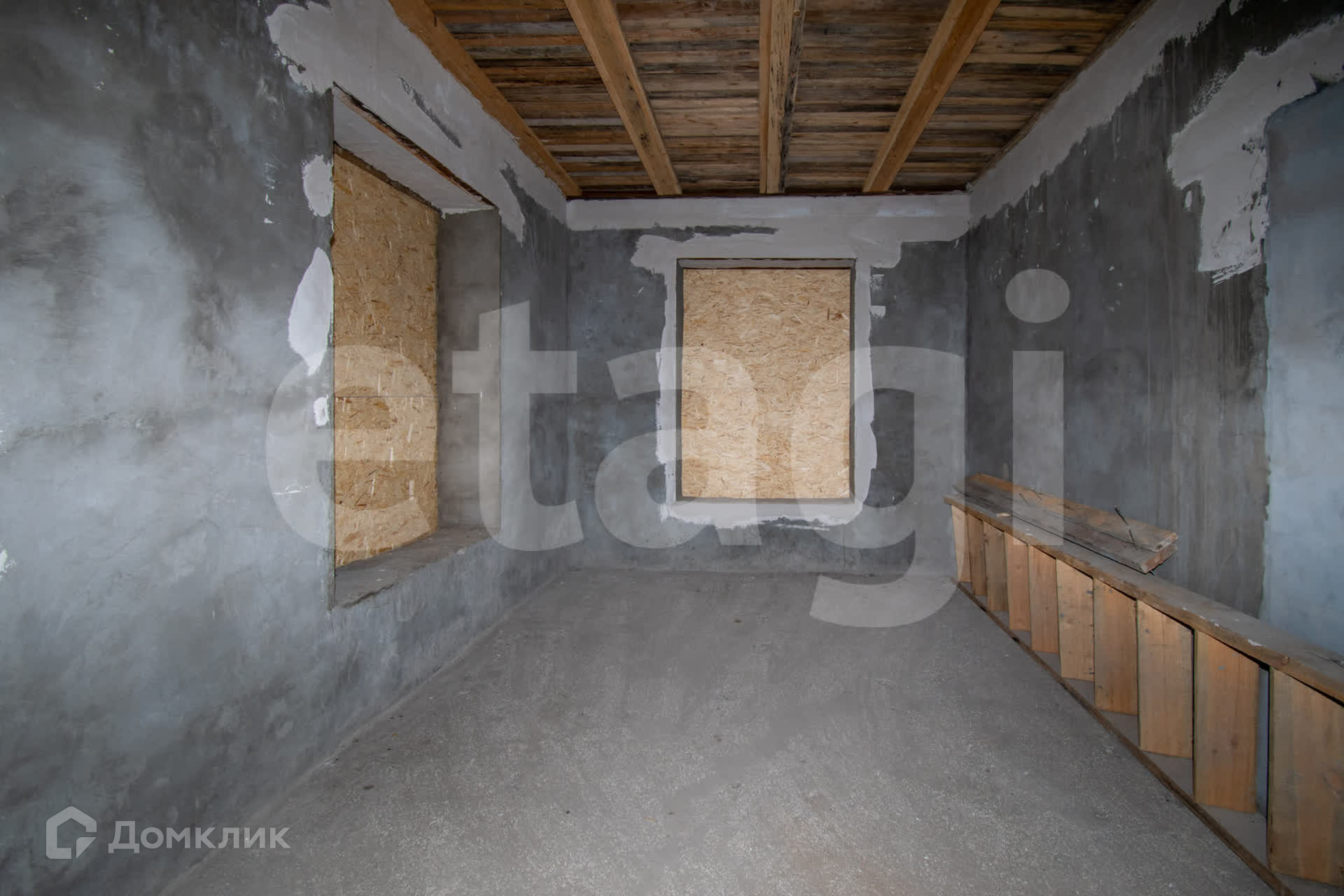 Выполнен из блоков, на фундаменте,частично оштукатурен.