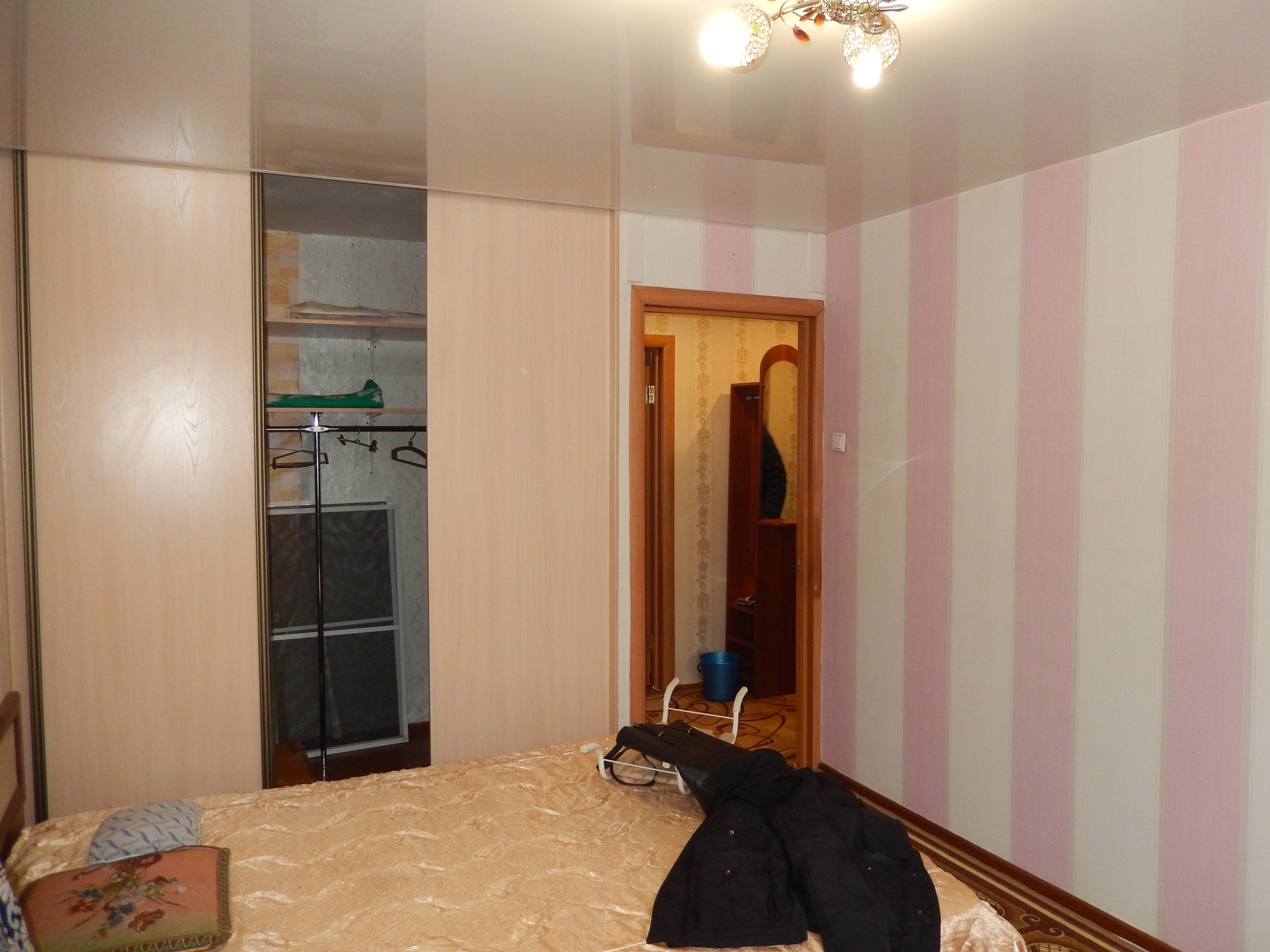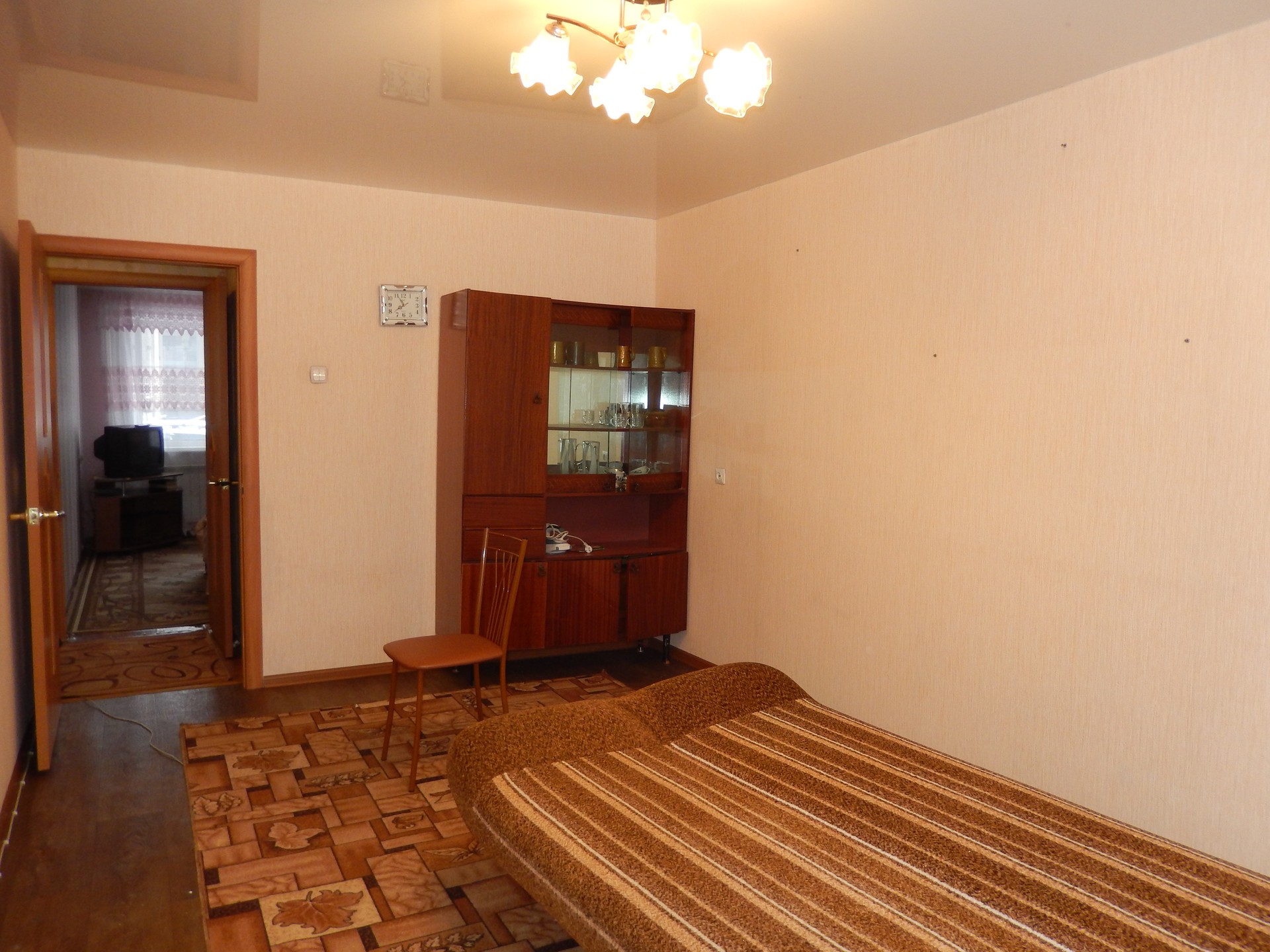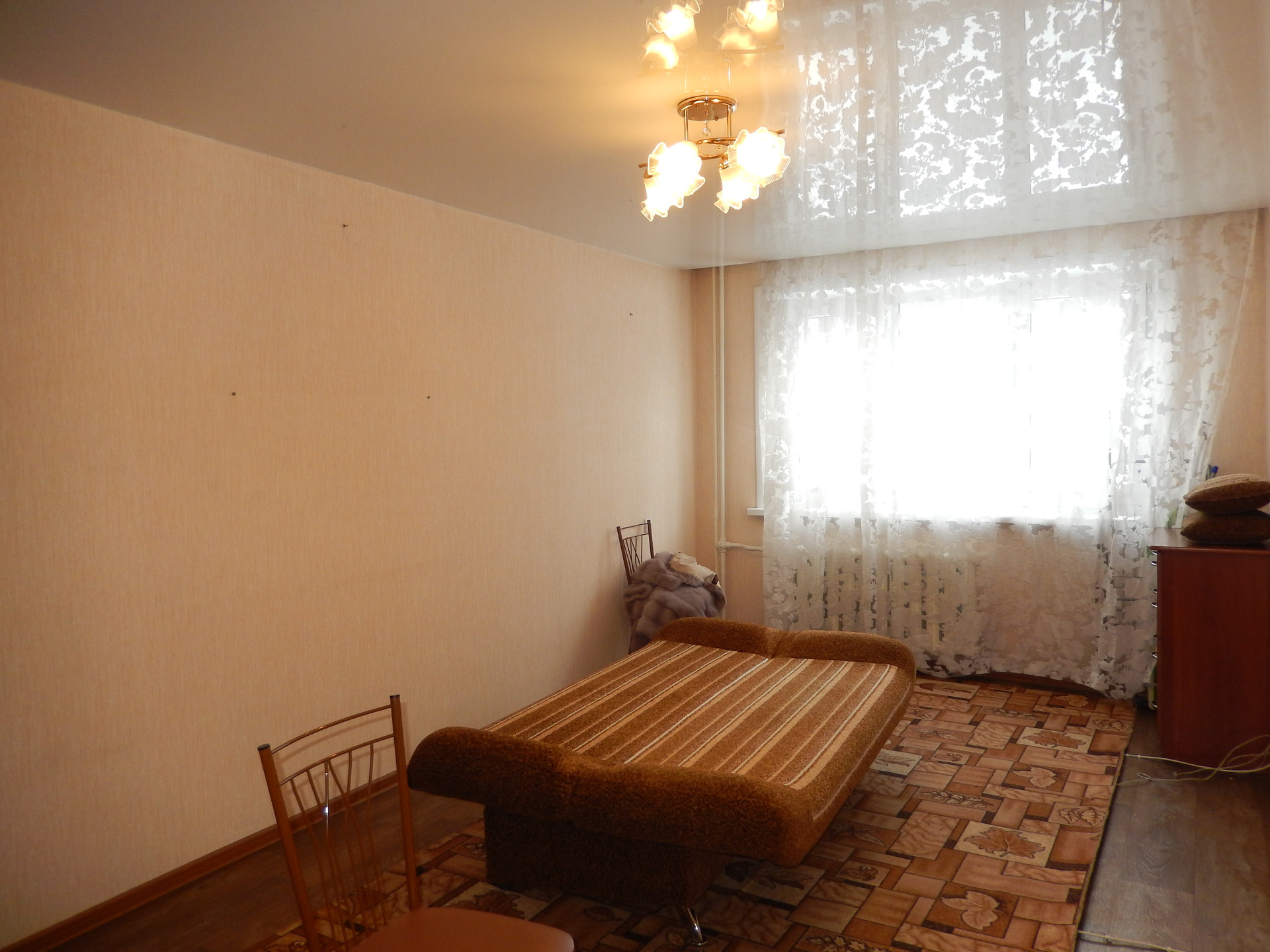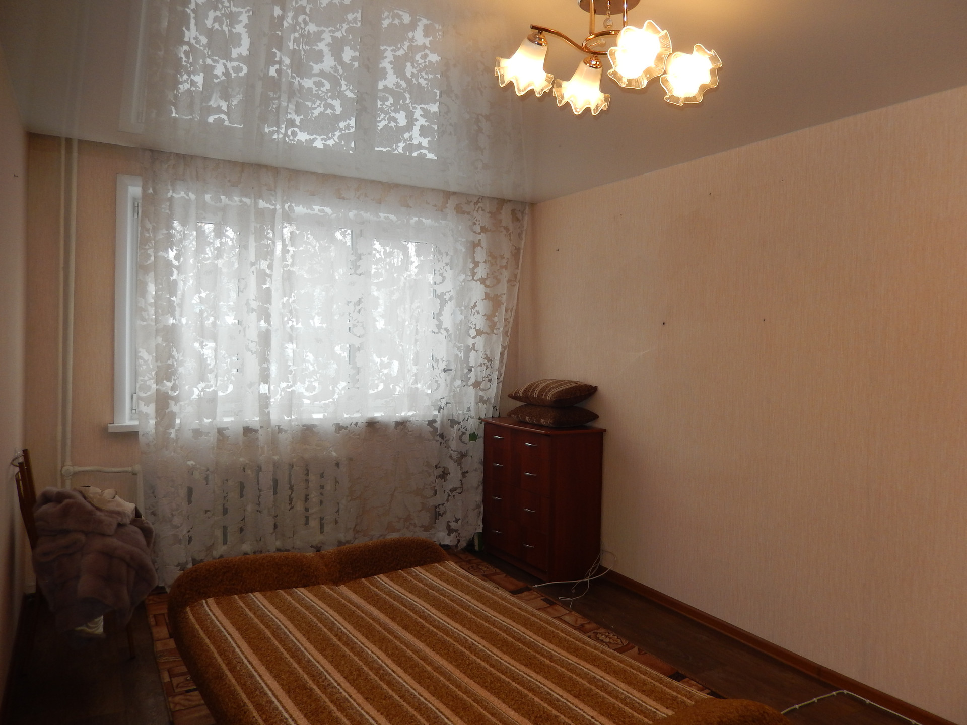 Квартира в обычном состоянии, пластиковые окна, натяжные потолки.  Возможен обмен на трех комнатную квартиру в этом же районе.