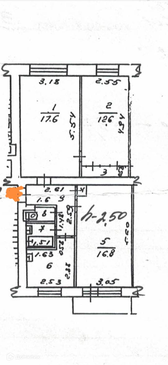 Высота потолков 2.5 м