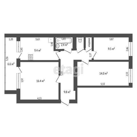 Общая площадь 63.3 м2