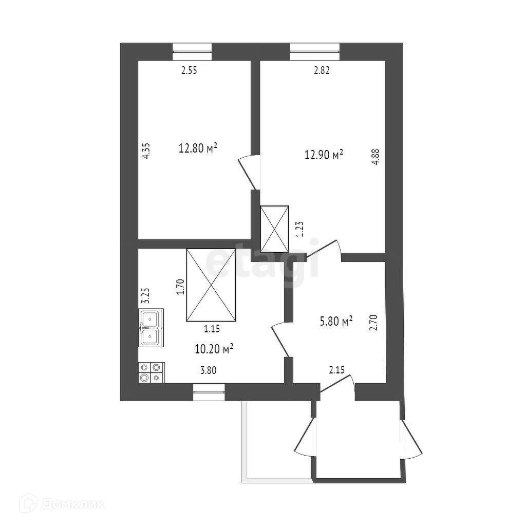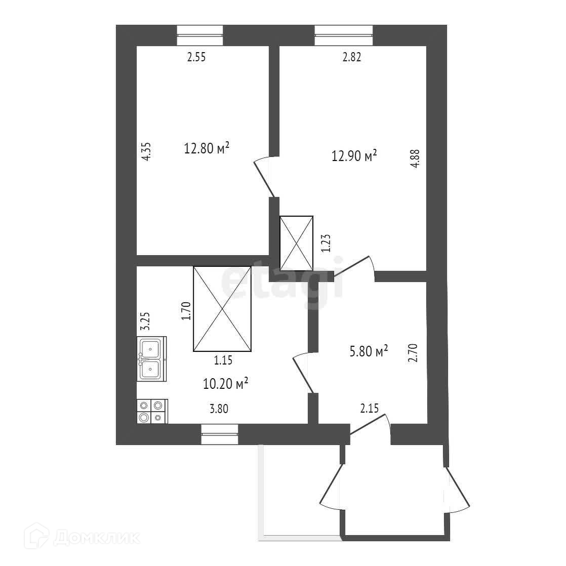 2-комнатная квартира, 42.3 м2, этаж 1 / 1, на продажу в посёлке Зайково, Коммунистическая улица, 147