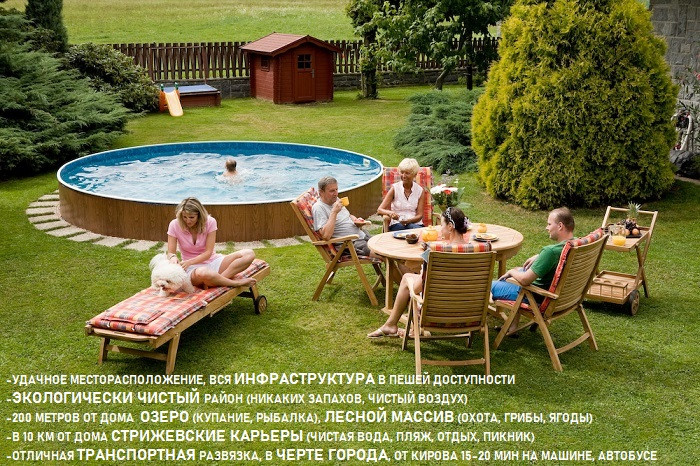 Удачное месторасположение, 200 метров от дома озеро, лесной массив, охота, рыбалка, чистый воздух, купание. В 10 км от дома расположены Стрижевские карьеры (чистая вода, купание, пляж, отдых, пикник)