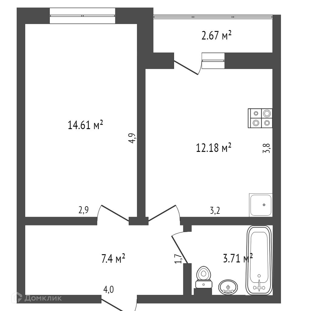 Общая площадь 40.5 м2
