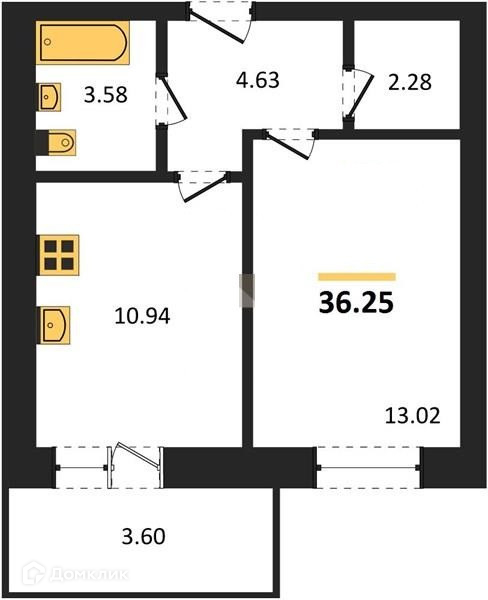 Общая площадь 36.25 м2