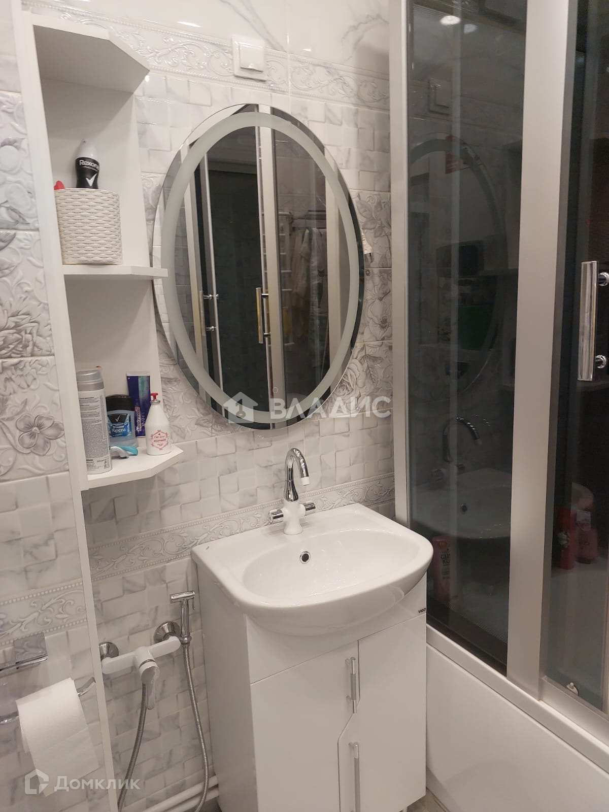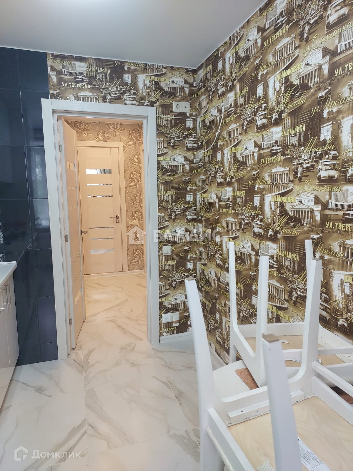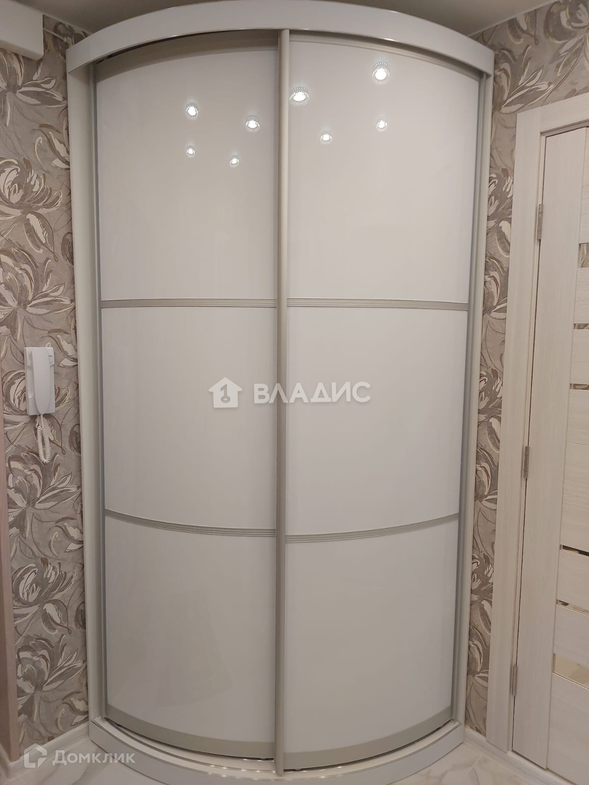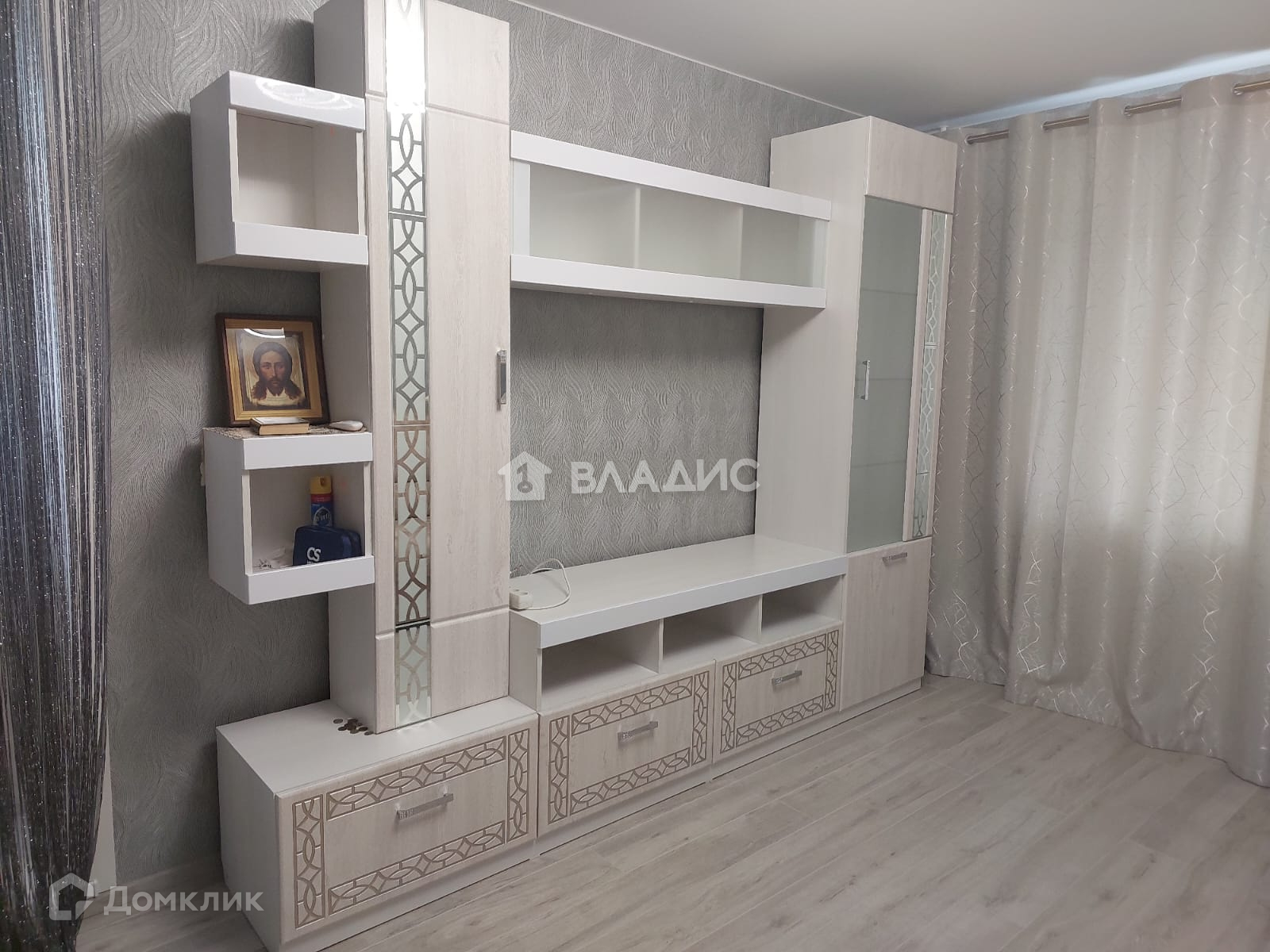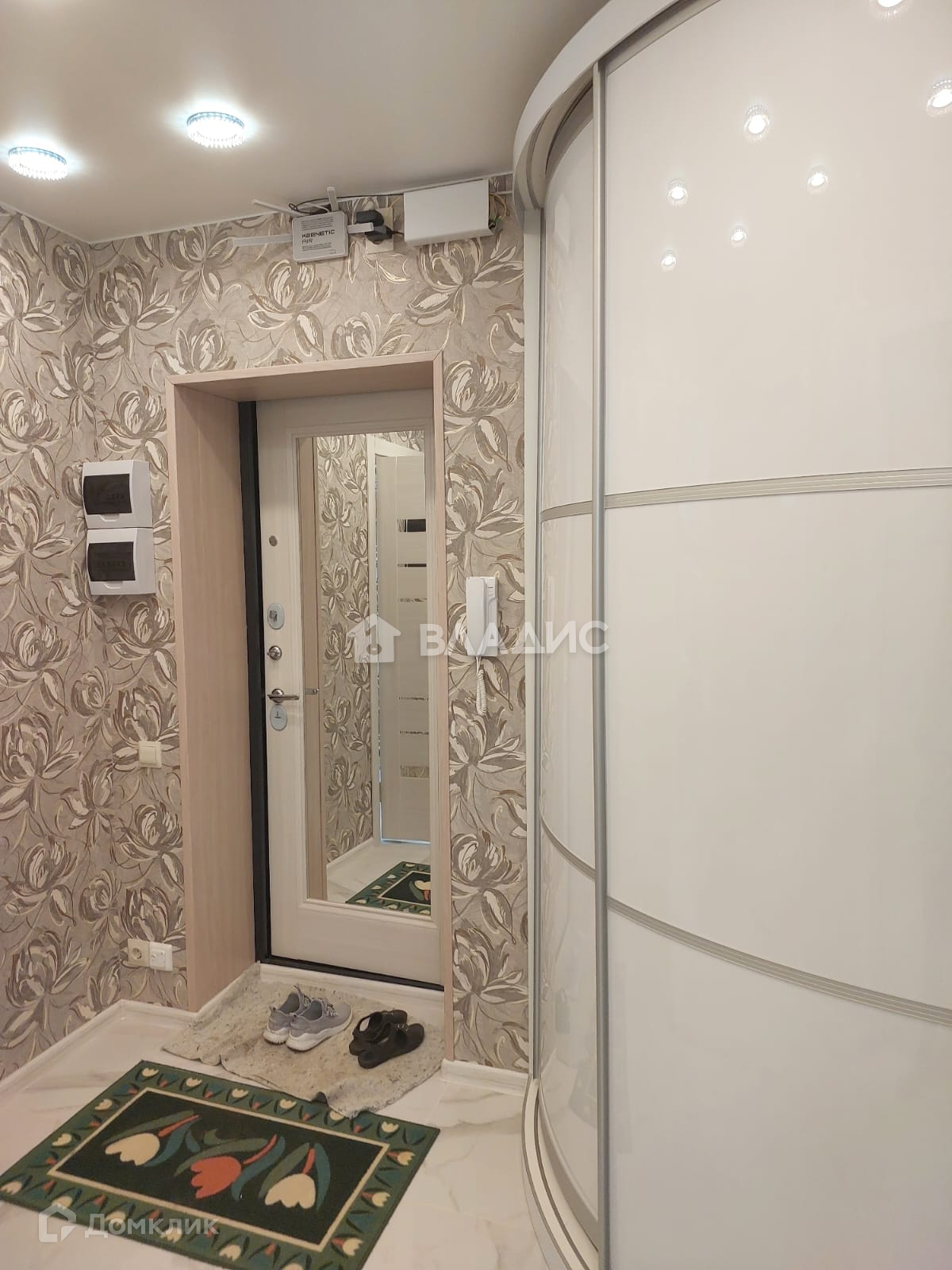 Остаётся в подарок новая мебель: модный кухонный гарнитур , вместительный зеркальный шкаф в комнате и стильный полукруглый коридоре!