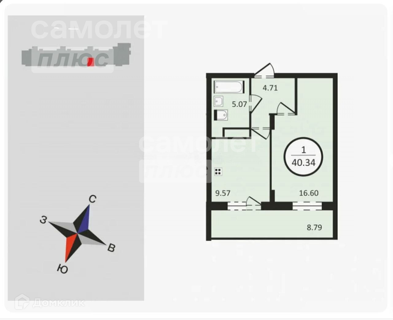 Общая площадь 40.4 м2