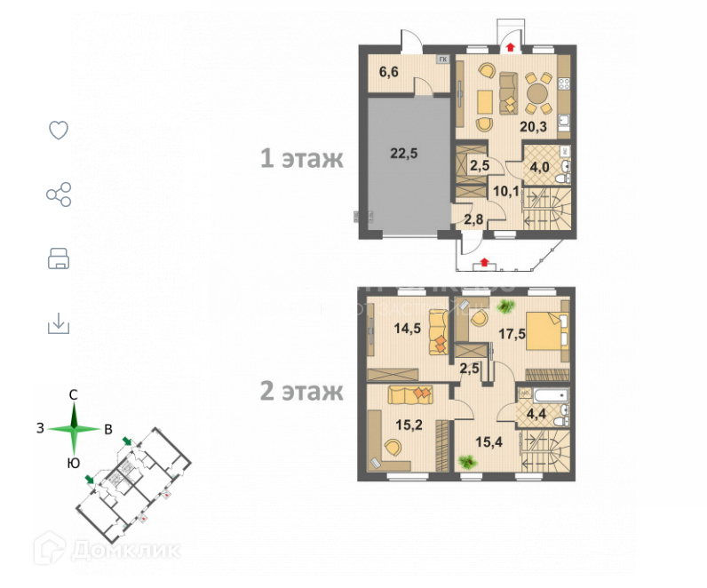 Таунхаусы в "Усадьбе за Клязьмой" - это дома, состоящие из двух 2-этажных квартир. В каждой квартире: