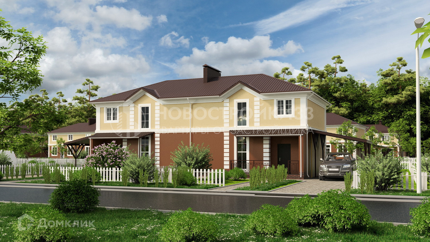 Квартал имеете единую архитектурную концепцию, новые асфальтированные дороги с тротуарами и уличным освещением и общую детскую площадку.