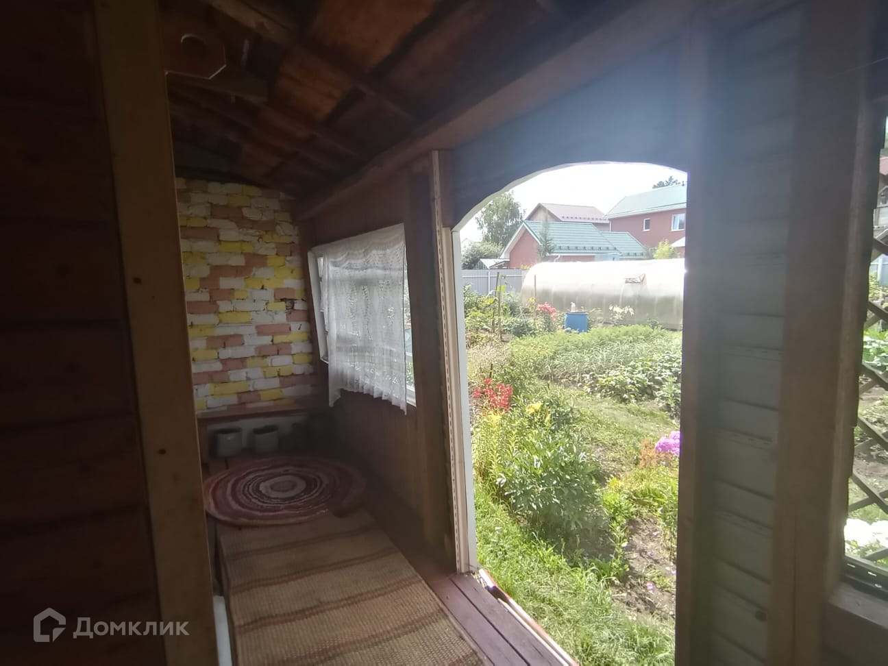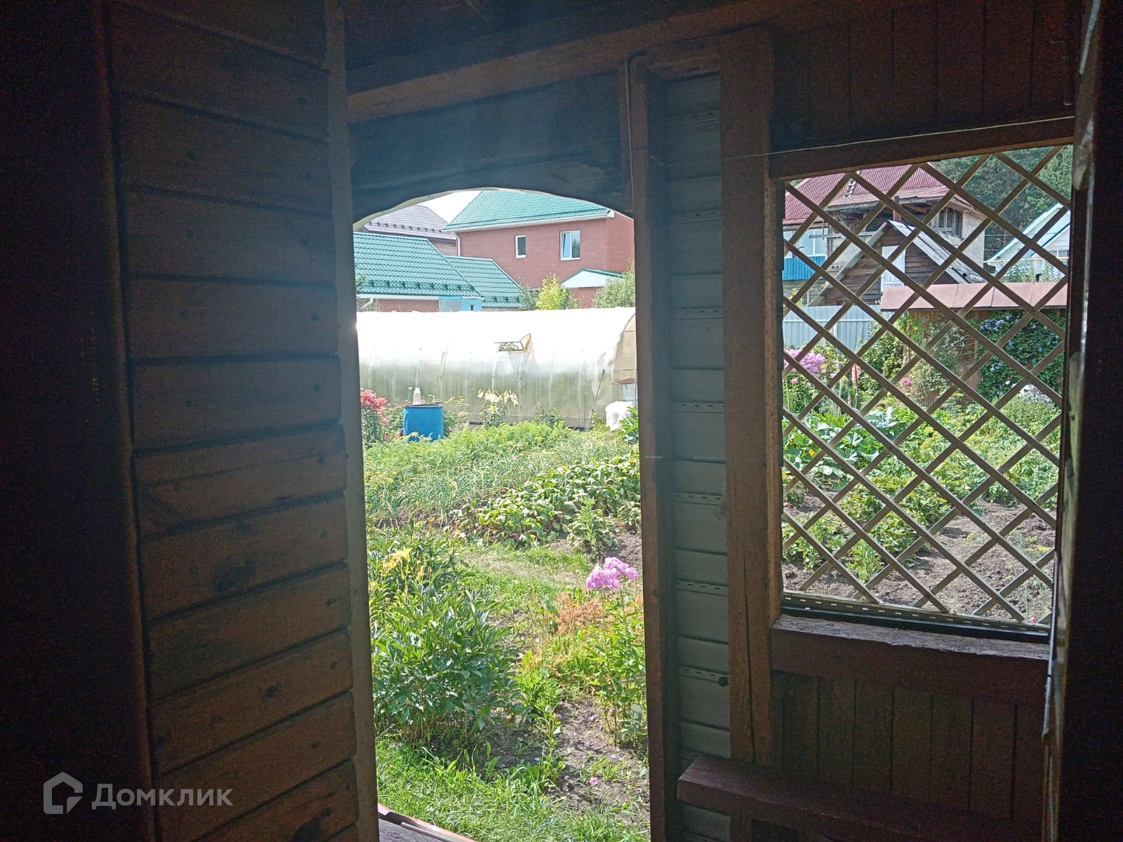 Участок полностью разработан и засажен фруктовыми деревьями, цветами, есть большая теплица, беседка и небольшой водоем.