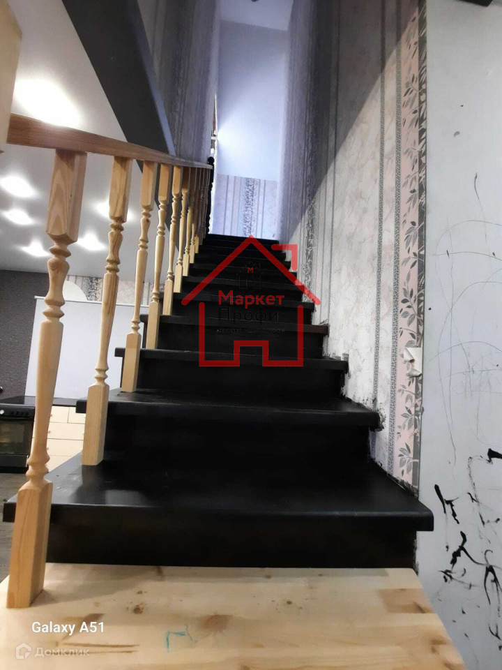 Лестница: каркас металлический, обшита деревом.