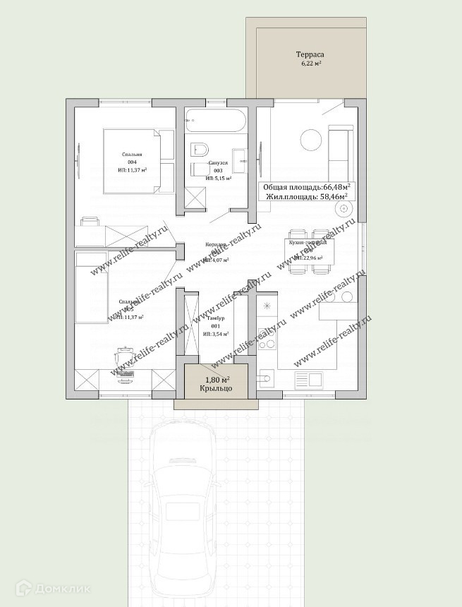Общая площадь дома 82-85 кв. м. Дом представлен в одном уровне, функционально продуманная практичная планировка: кухня-гостиная 35 кв. м. (ЕВРОтрешка), санузел 5,5 кв м, зона прихожей 7,8 кв. м., две изолированные спальни 11+ 11,1 кв. м., из столовой выход на территорию террасы. Благодаря высоким потолкам 2.9 метра и панорамному остеклению весь дом наполняется светом и свежим чистым воздухом.