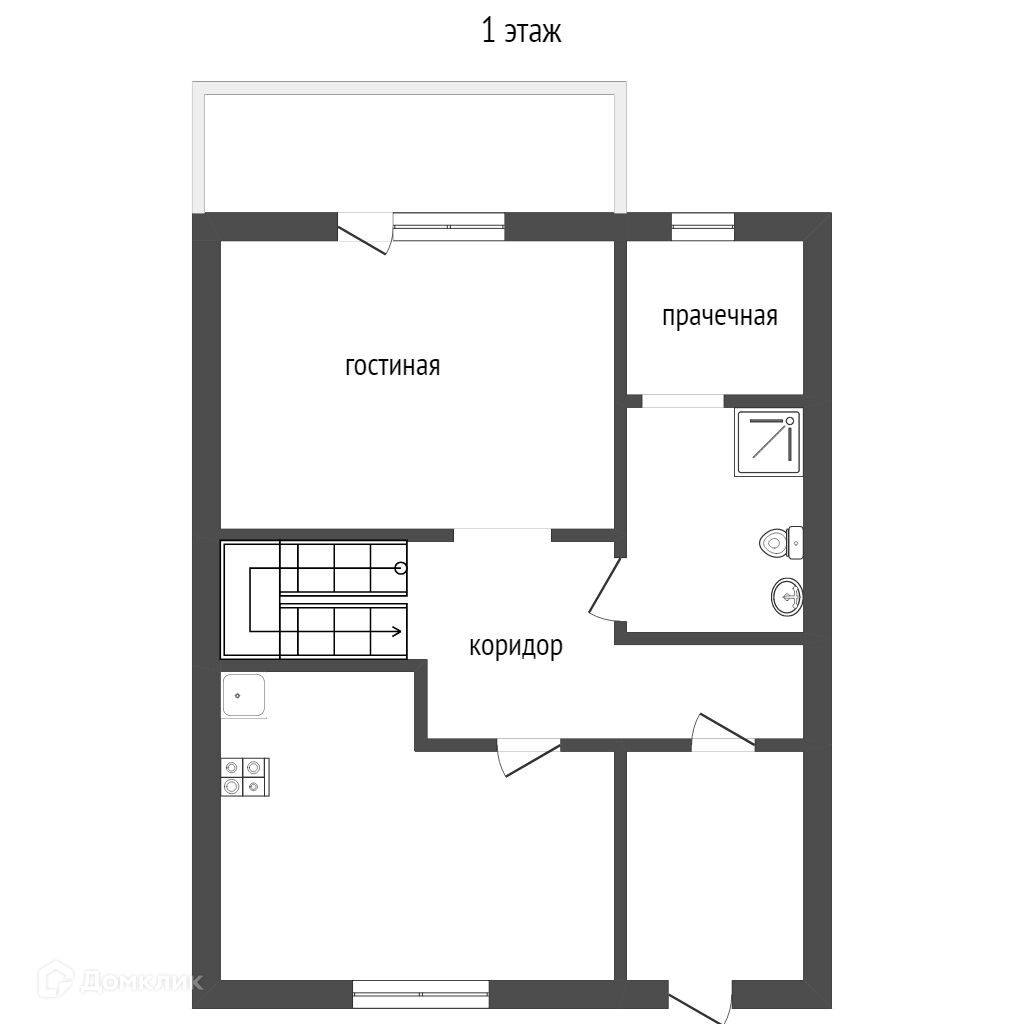 • 1 этаж.: коридор, кухня, гостиная с выходом во двор, сан. узел 6 м.кв.