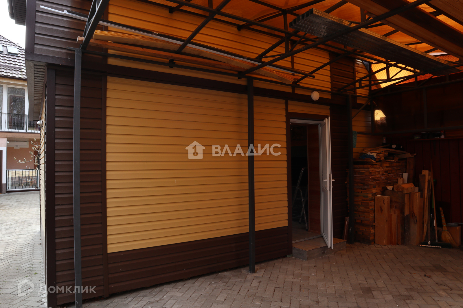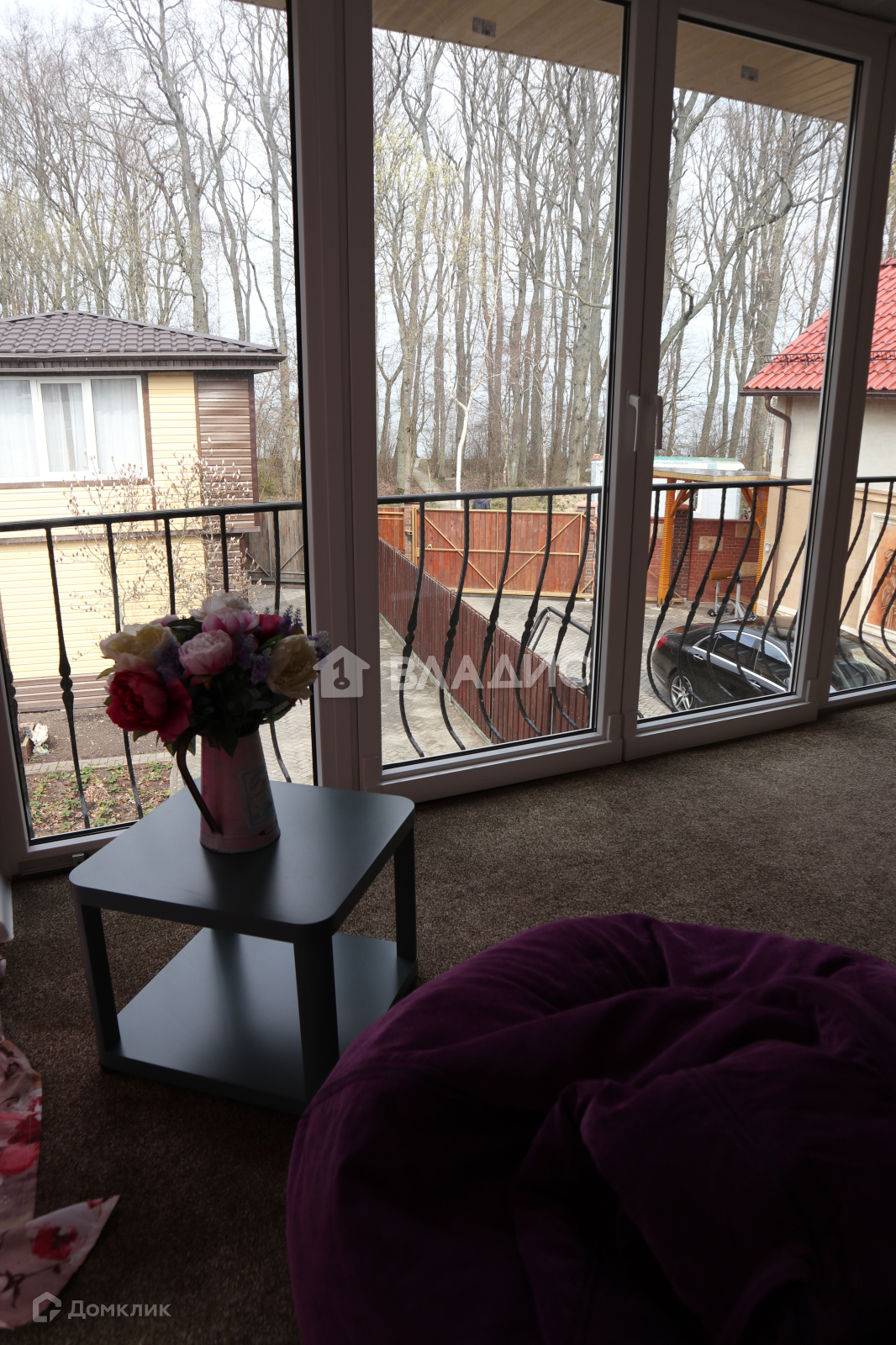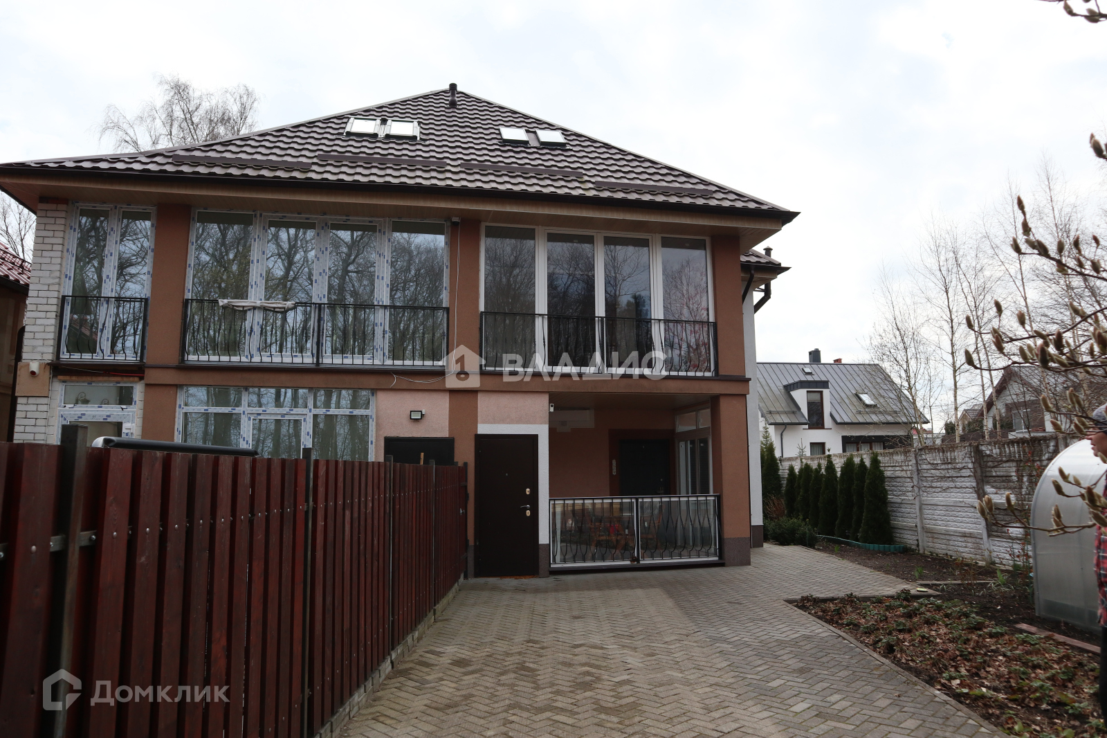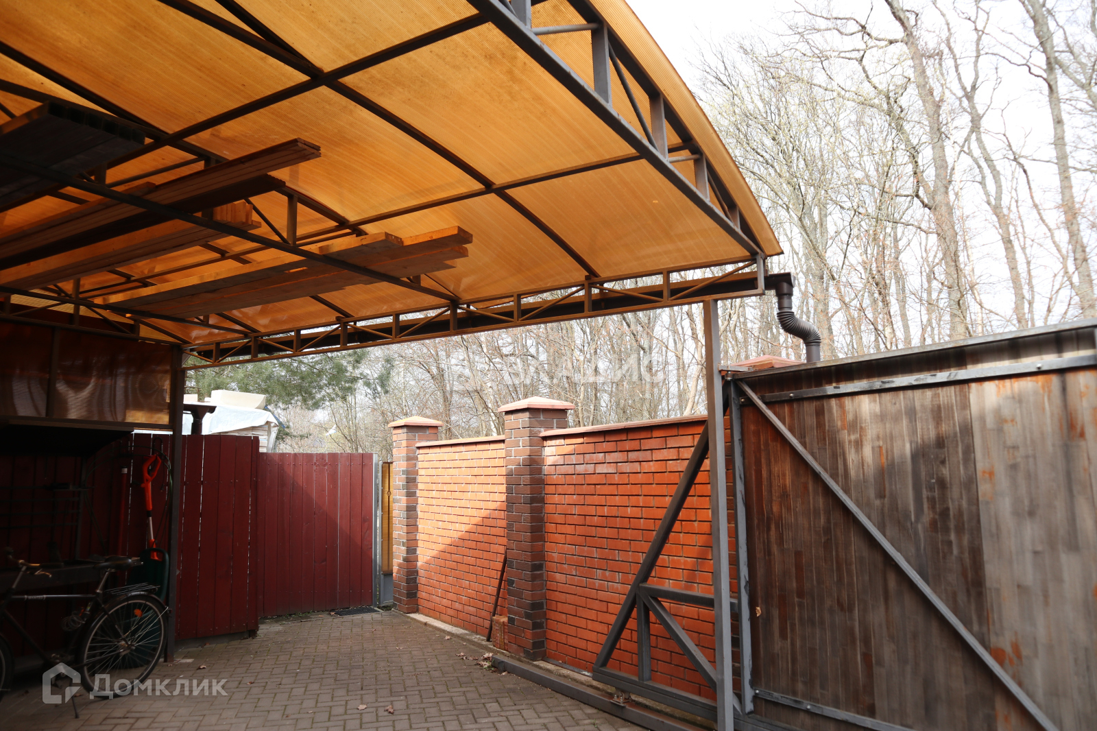 Дом огорожен забором. Есть крытое парковочное место.