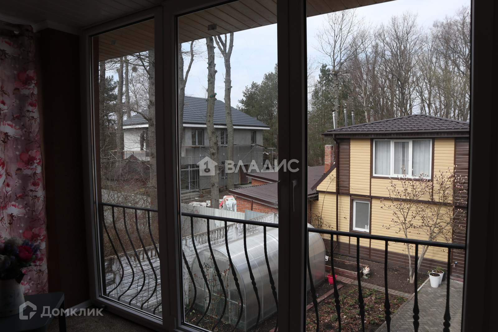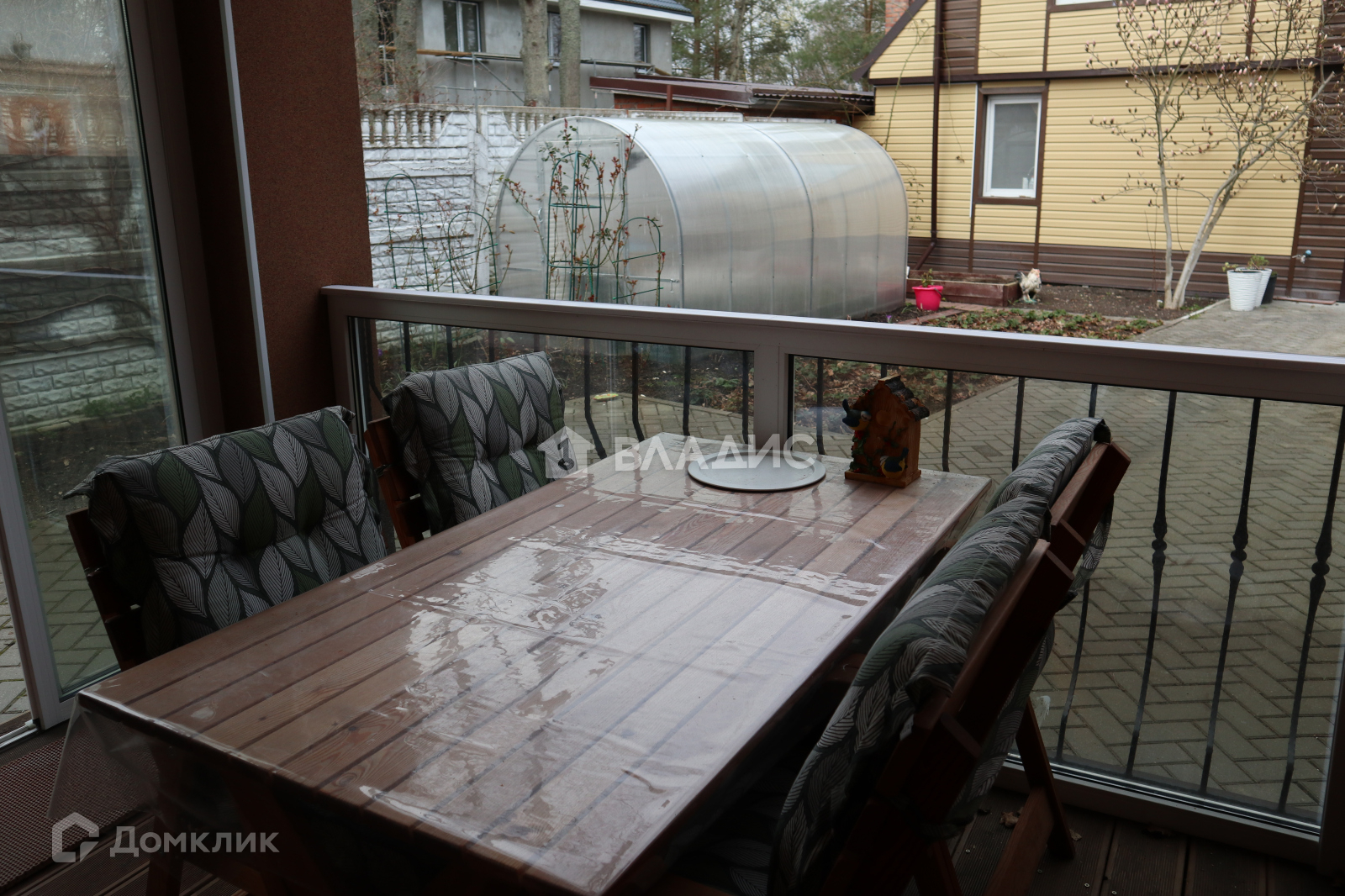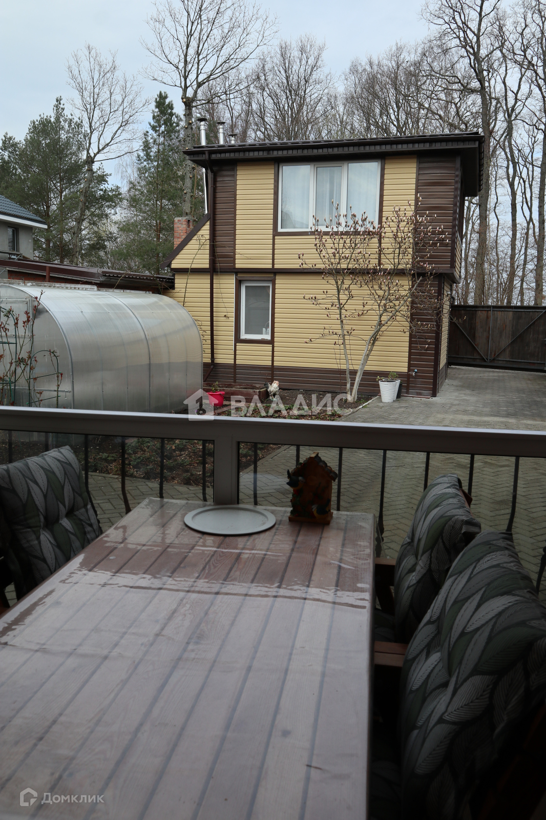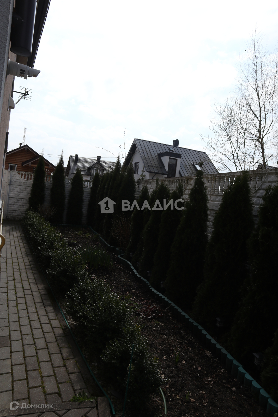 Двор выложен плиткой, во дворе растут туи, магнолия, цветы, клубника. Есть теплица.