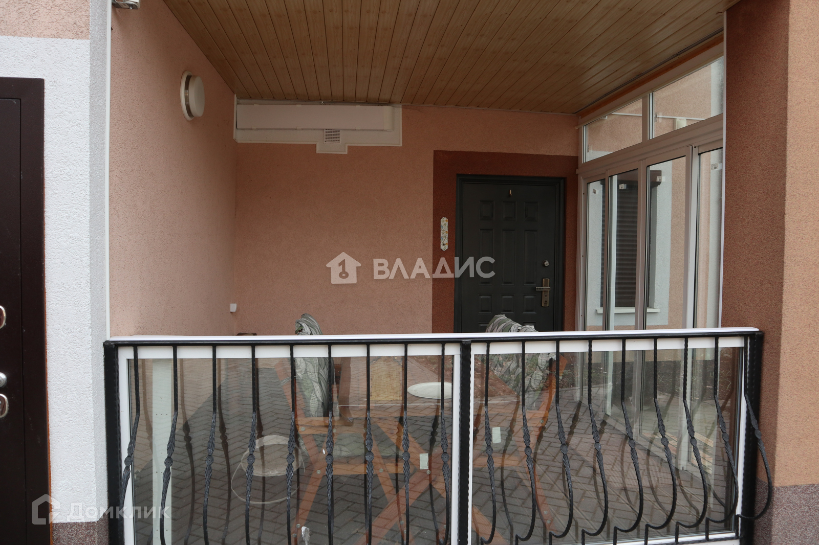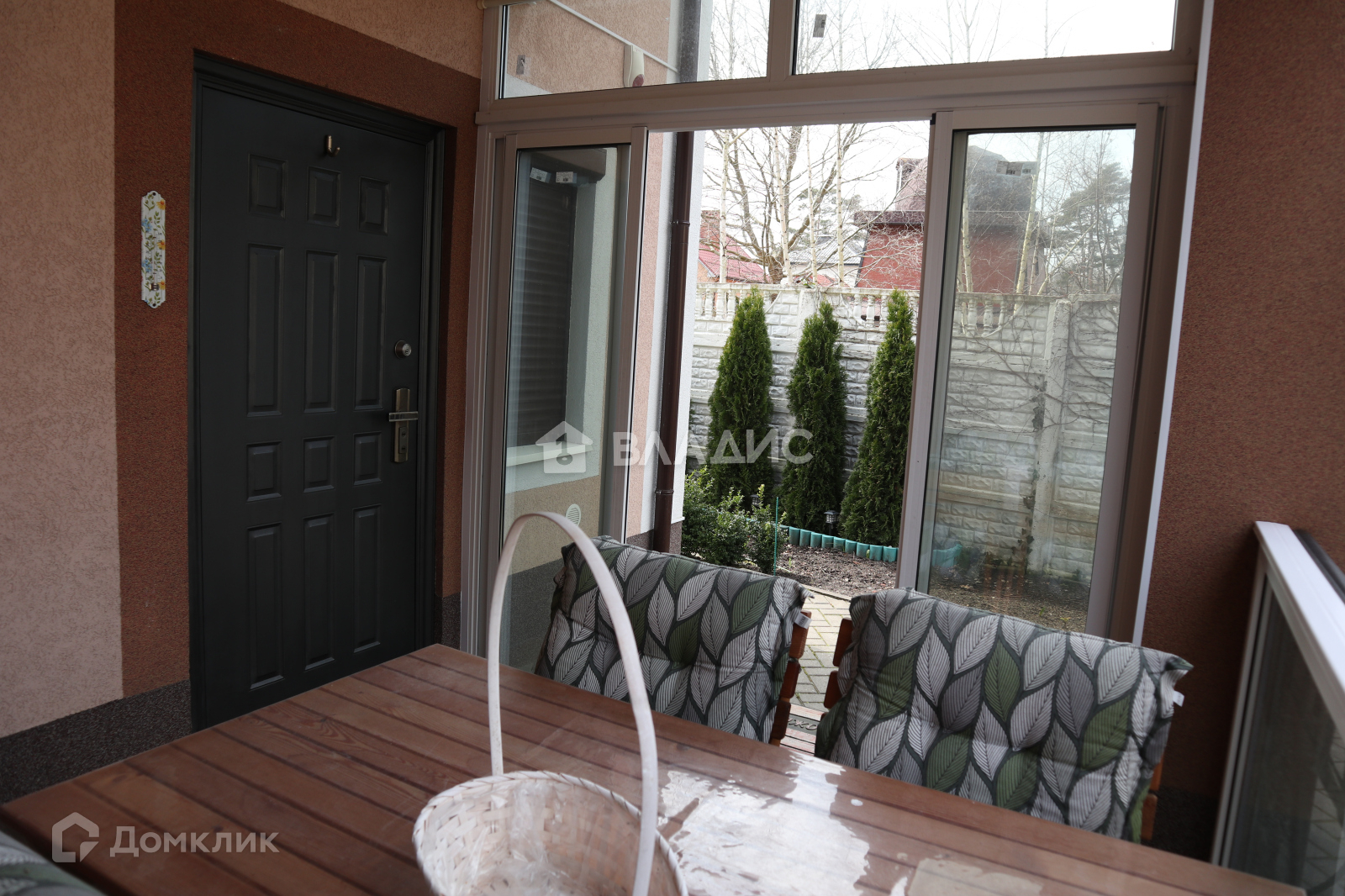 У входа уютная терраса, на втором этаже большой застекленный балкон, из которого открывается вид на море. Сидя в уютном кресле с чашечкой кофе можно любоваться морскими пейзажами.