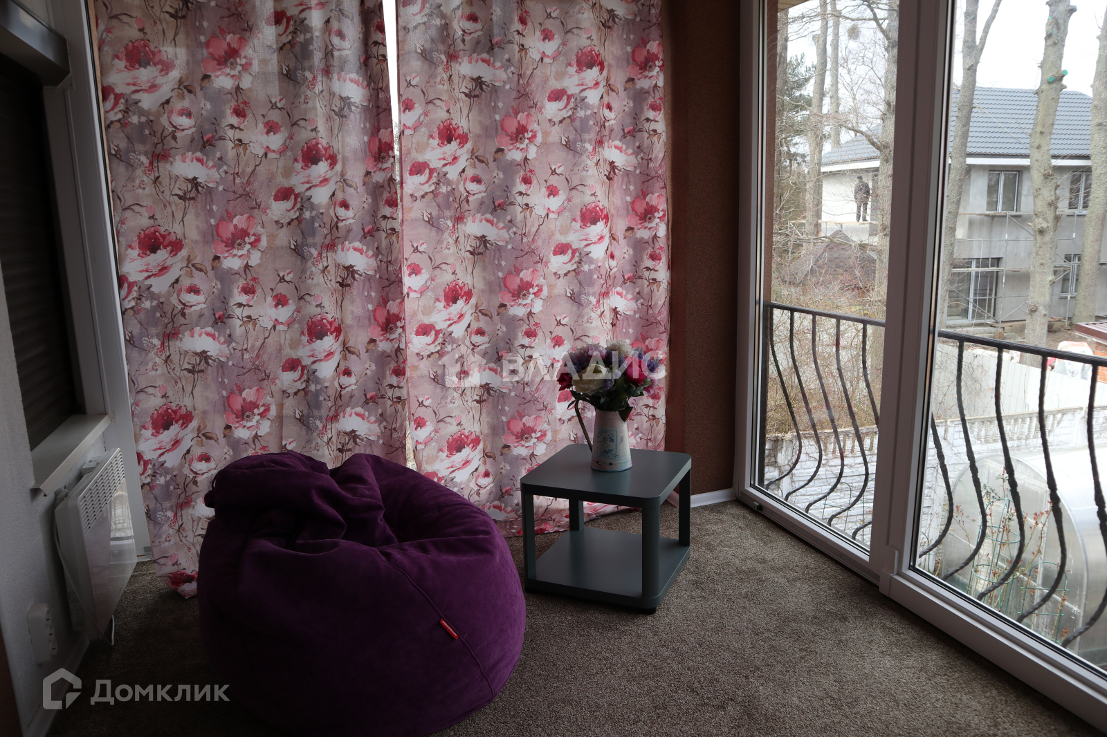 спальня, из которой выход на большой застекленный балкон.
