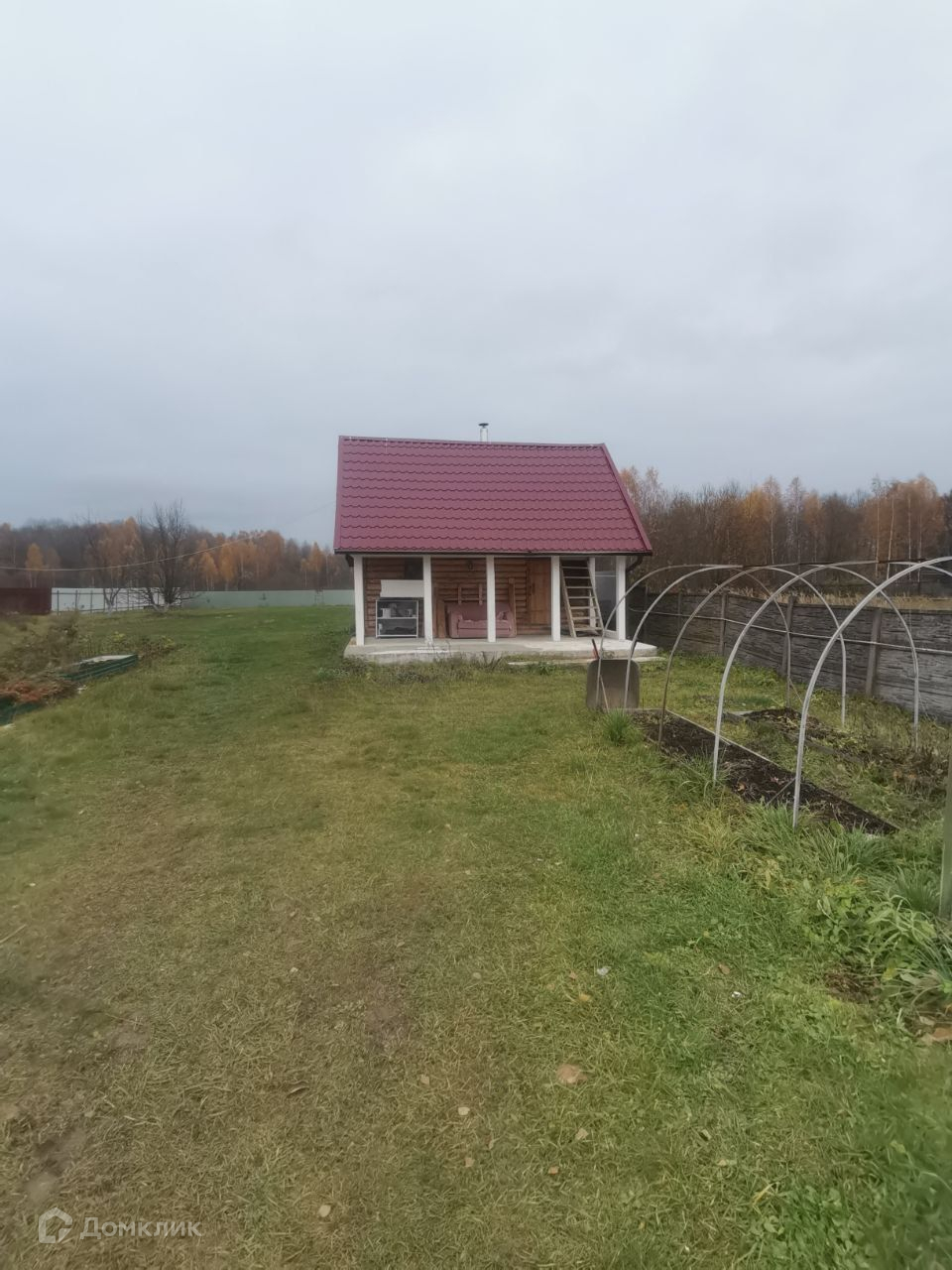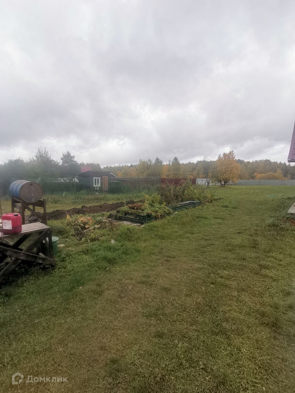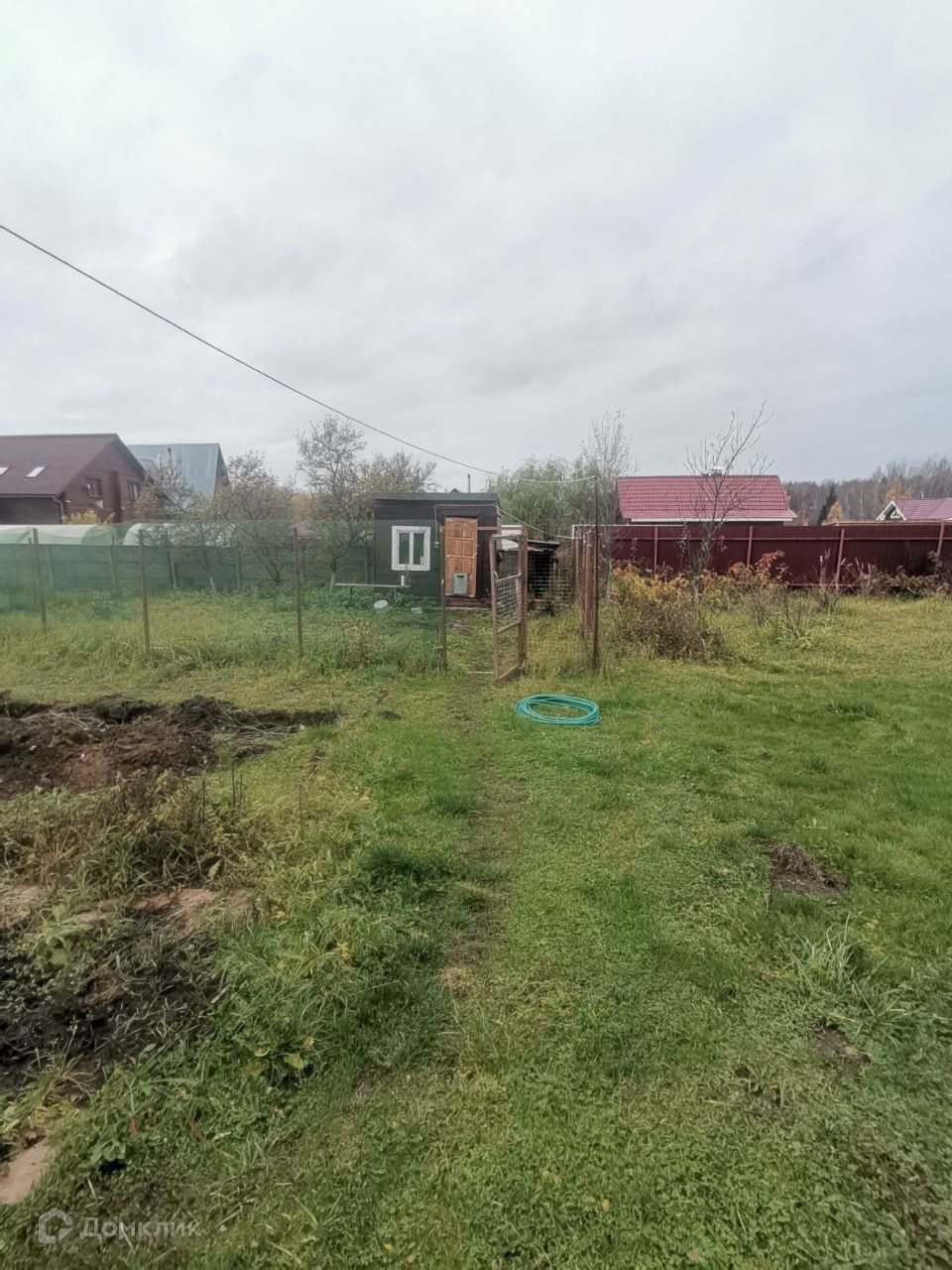 На участке есть летняя беседка, баня, курятник, гараж. Яблони, груши, малина, ежевика. Участок полностью обнесен забором.
