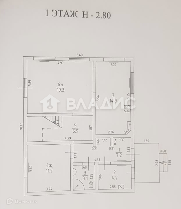 Первый этаж: высота потолка 2,8 кв.м кухня 14,9 кв.м, гостиная 19,3 кв.м, изолированная спальня 11,2 кв.м, 2 холла 7,2 и 5,9 кв.м, санузел совмещенный с душевой кабиной 3,1 кв.м, котельная 4,7 кв.м.