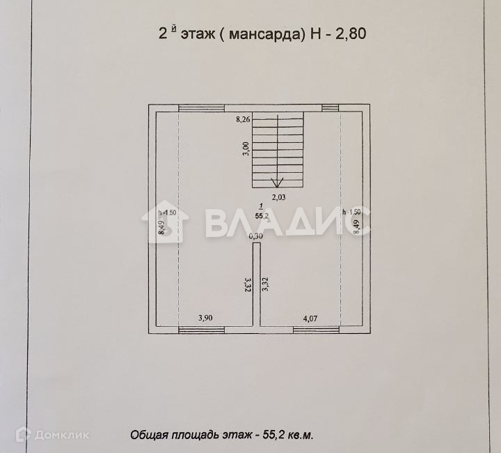• 2 этаж (высота потолка 2,8 м.):