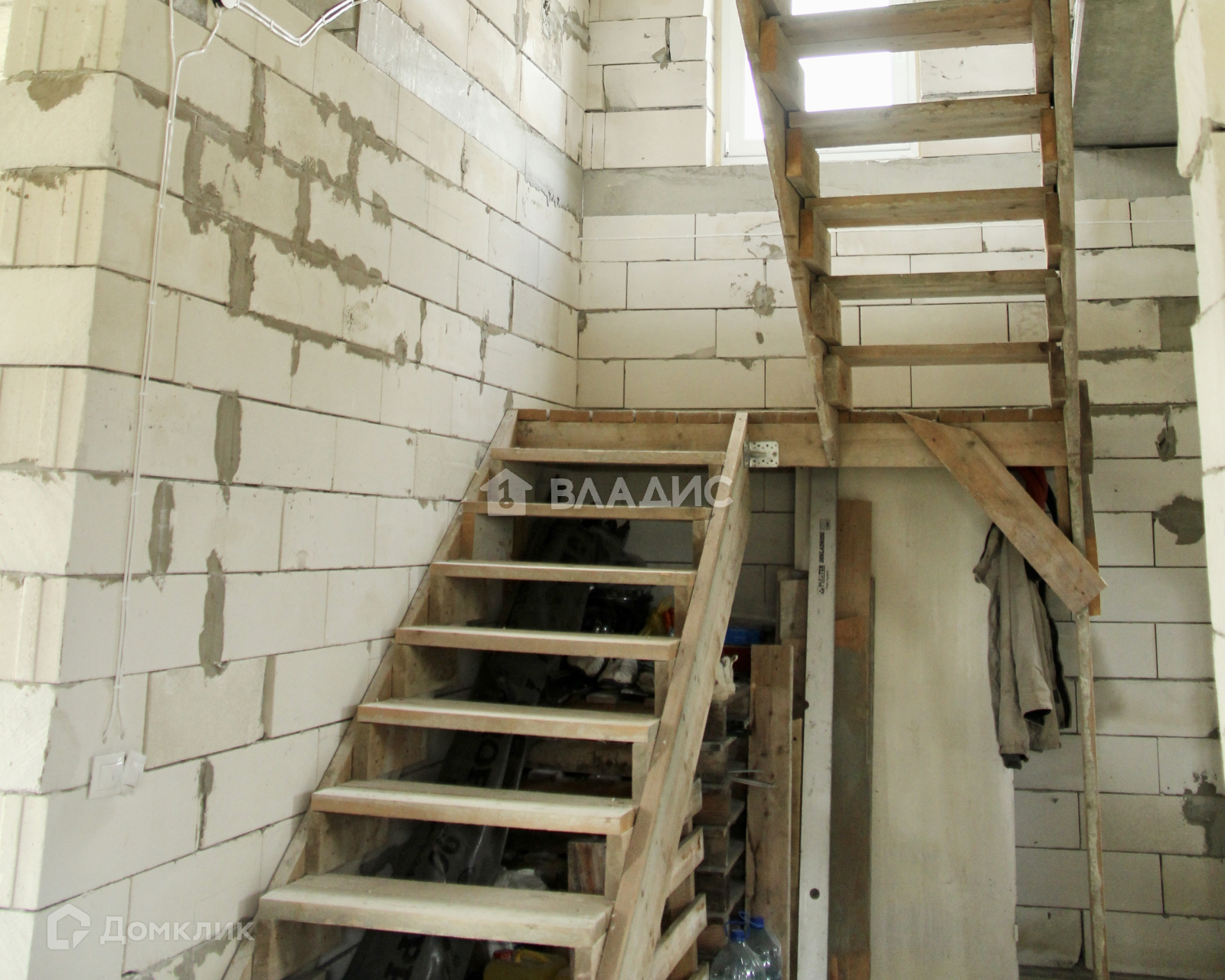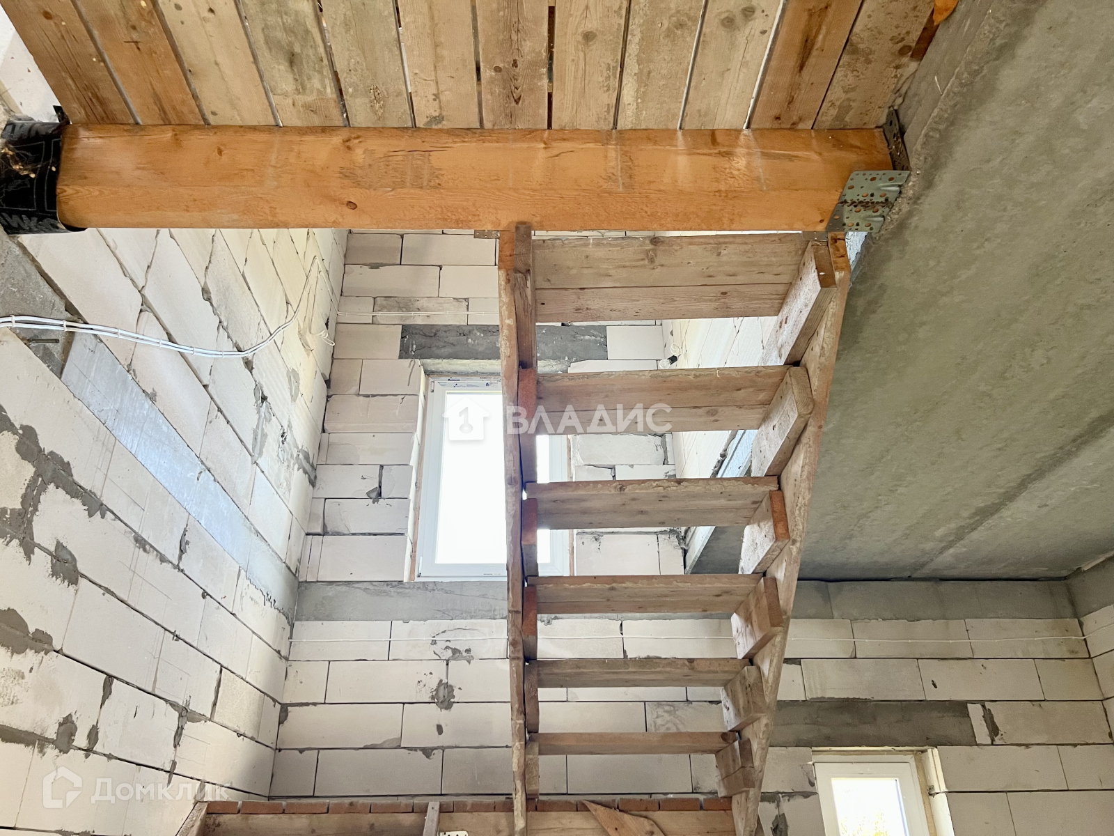 Временная деревянная лестница - с хорошим шагом, не узкая.