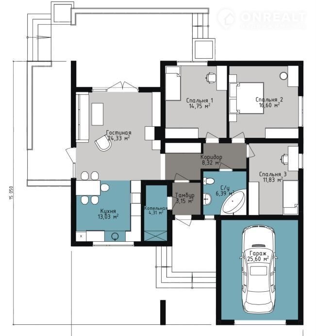 — 3 спальни (11-15 м2);