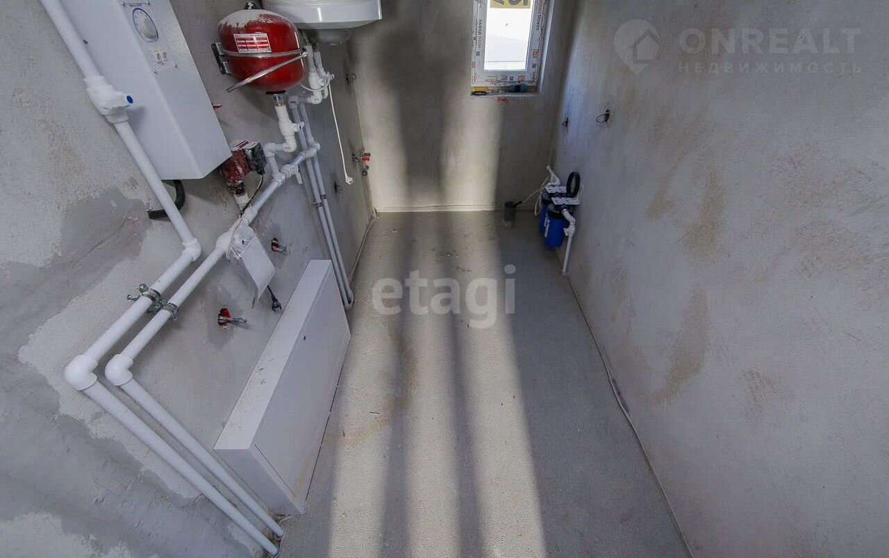 Бетонная стяжка, проведен теплый пол, установлена гребенка, есть бойлер. Крыша утеплена минеральной ватой, дом утеплен пенополистероллом 100 мм. Предусмотрен вход на чердак.