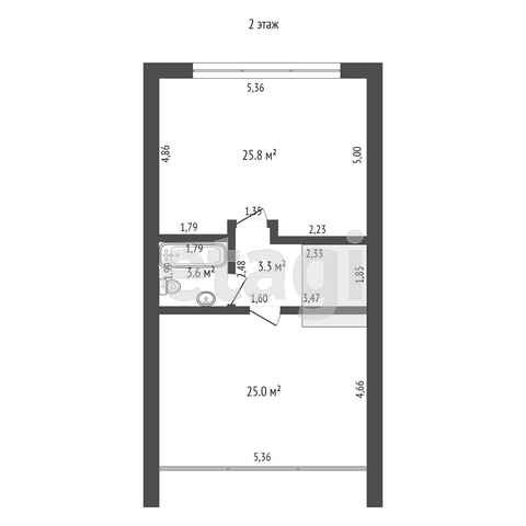 Второй этаж санузел, две комнаты!