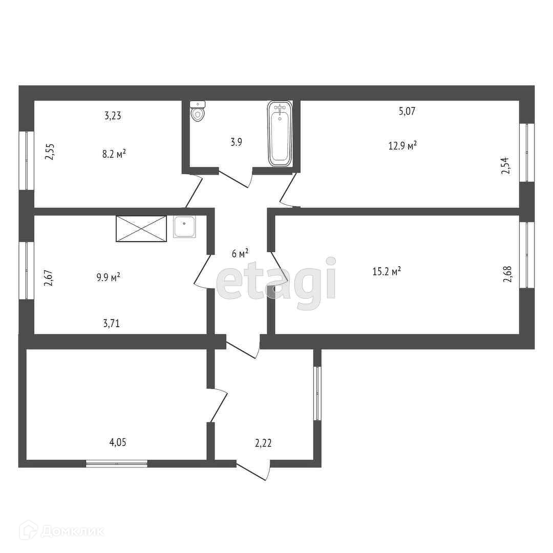 Общая площадь 56.1 м2