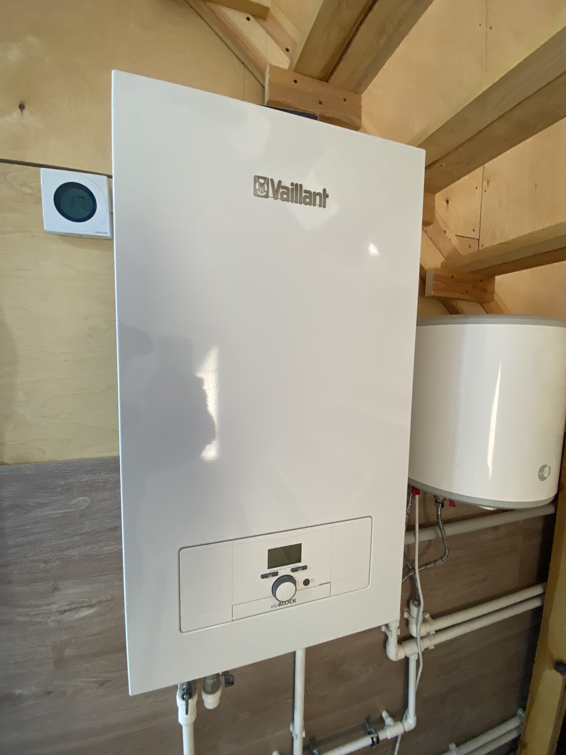 + Электрический котел отопления немецкой компании «Vaillant» с подключением бойлера (6 Квт) (стоимость котла 130000р.)