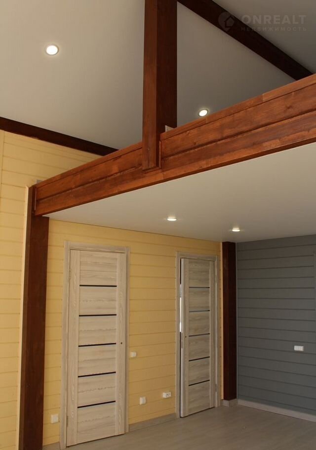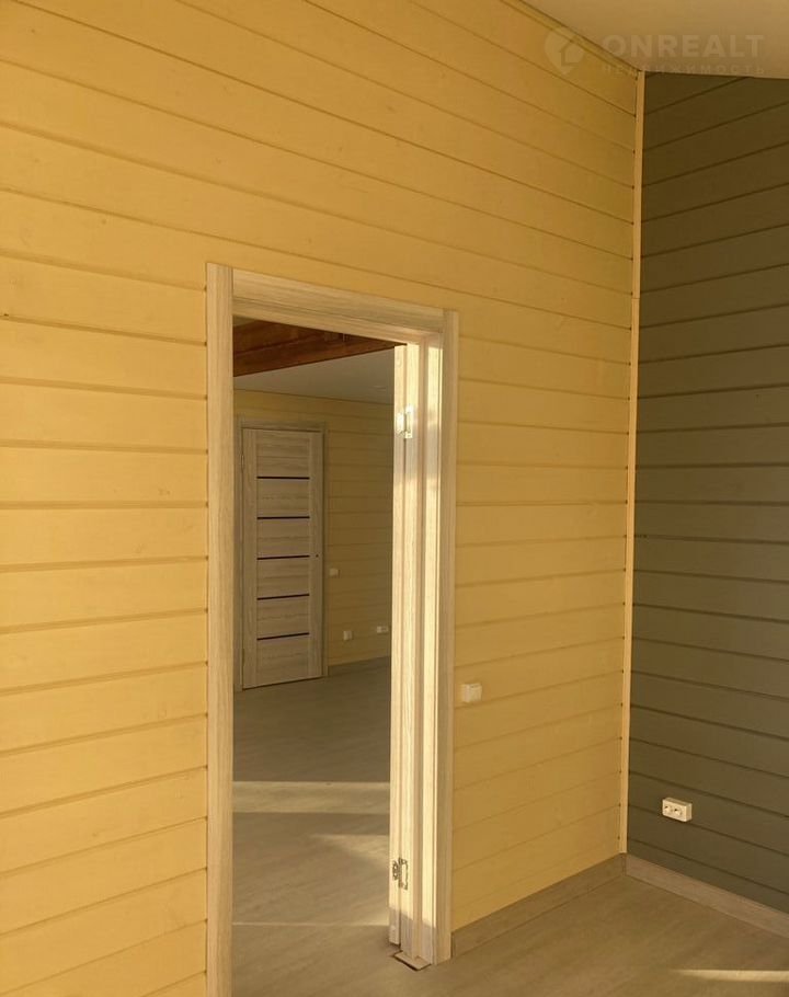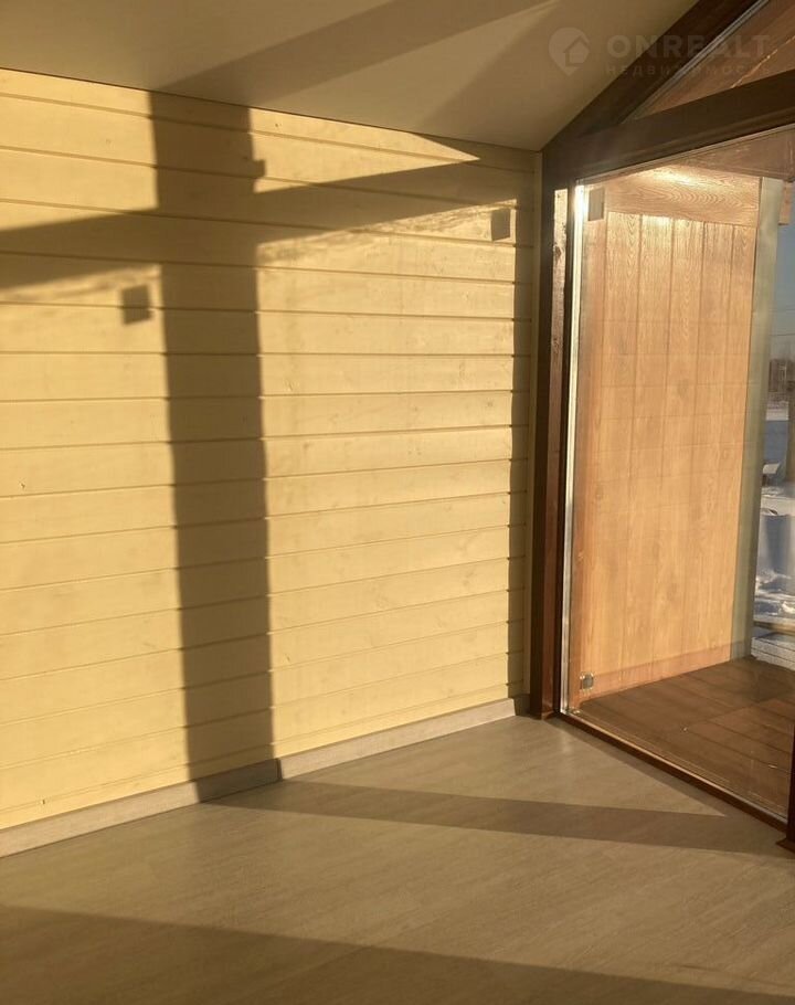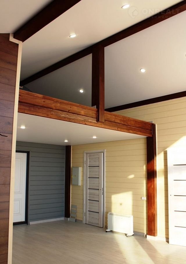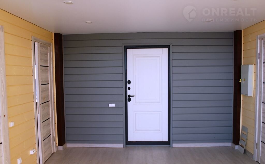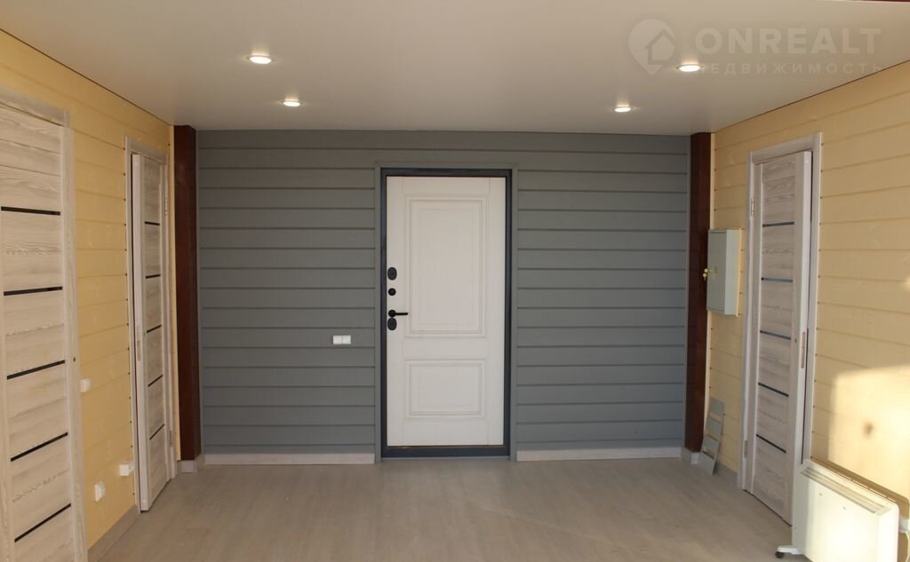• Дом полностью с чистовой отделкой: натяжные потолки, отделка стен — имитация бруса, пол — ламинат, установлена сантехника.