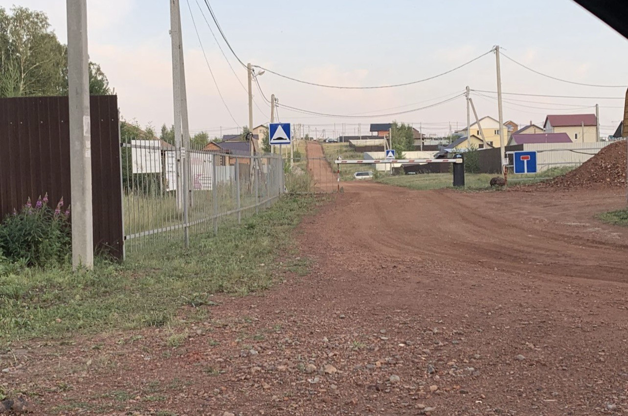 На въезде в поселок пропускная система, обустроены шлагбаум и парковка.