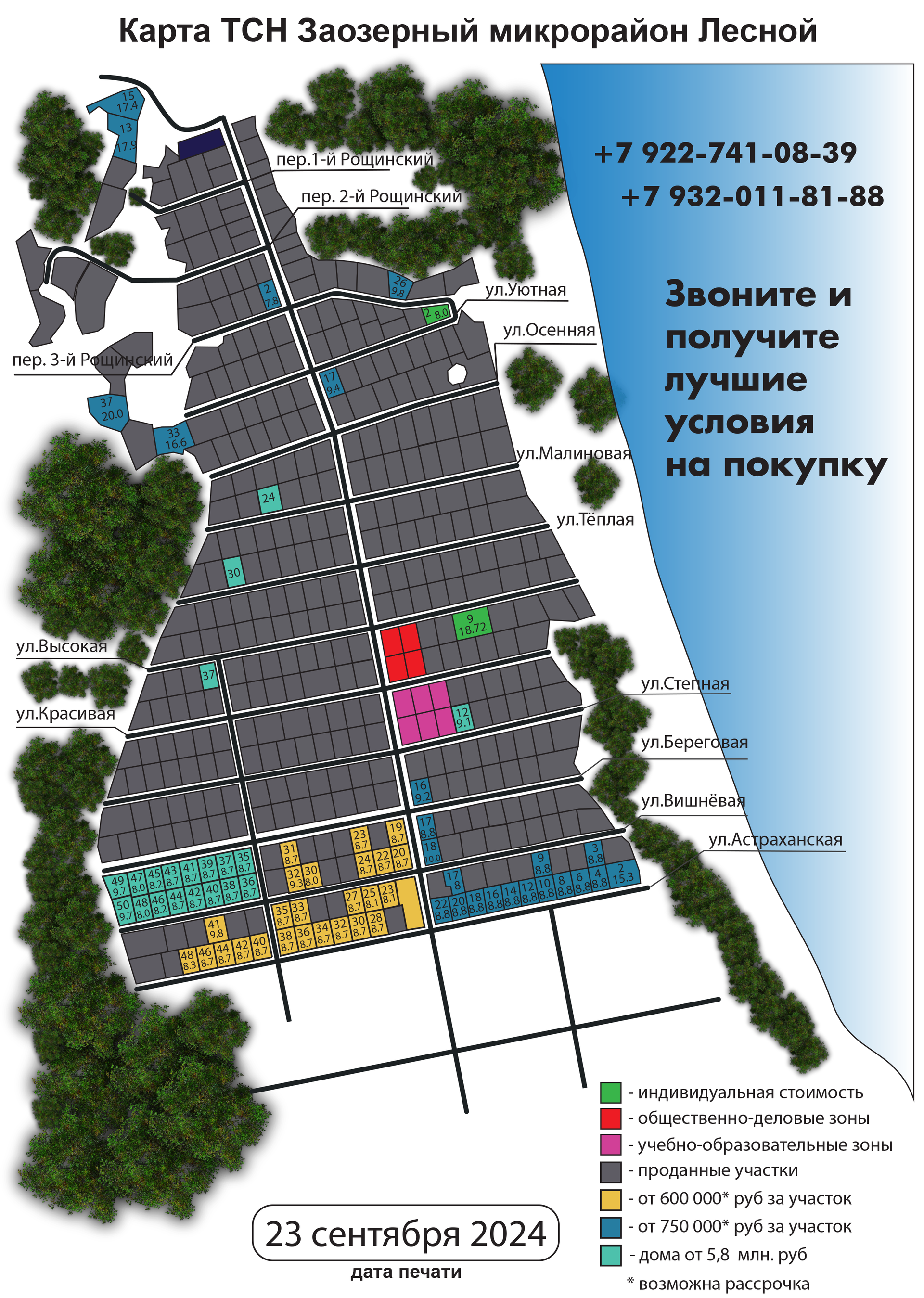 География и название: Челябинская область - новый закрытый посёлок ИЖС на берегу озера. Закрытая территория между березовым лесом и озером. Общее количество земельных участков более 1000. Продано 450. Застроено 300.