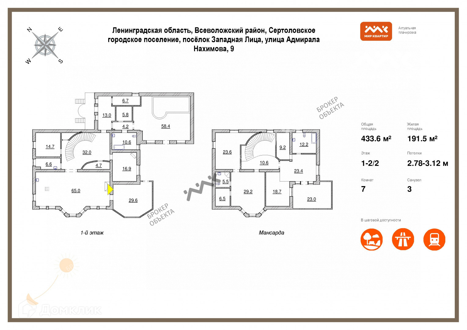 Общая площадь 433.8 м2