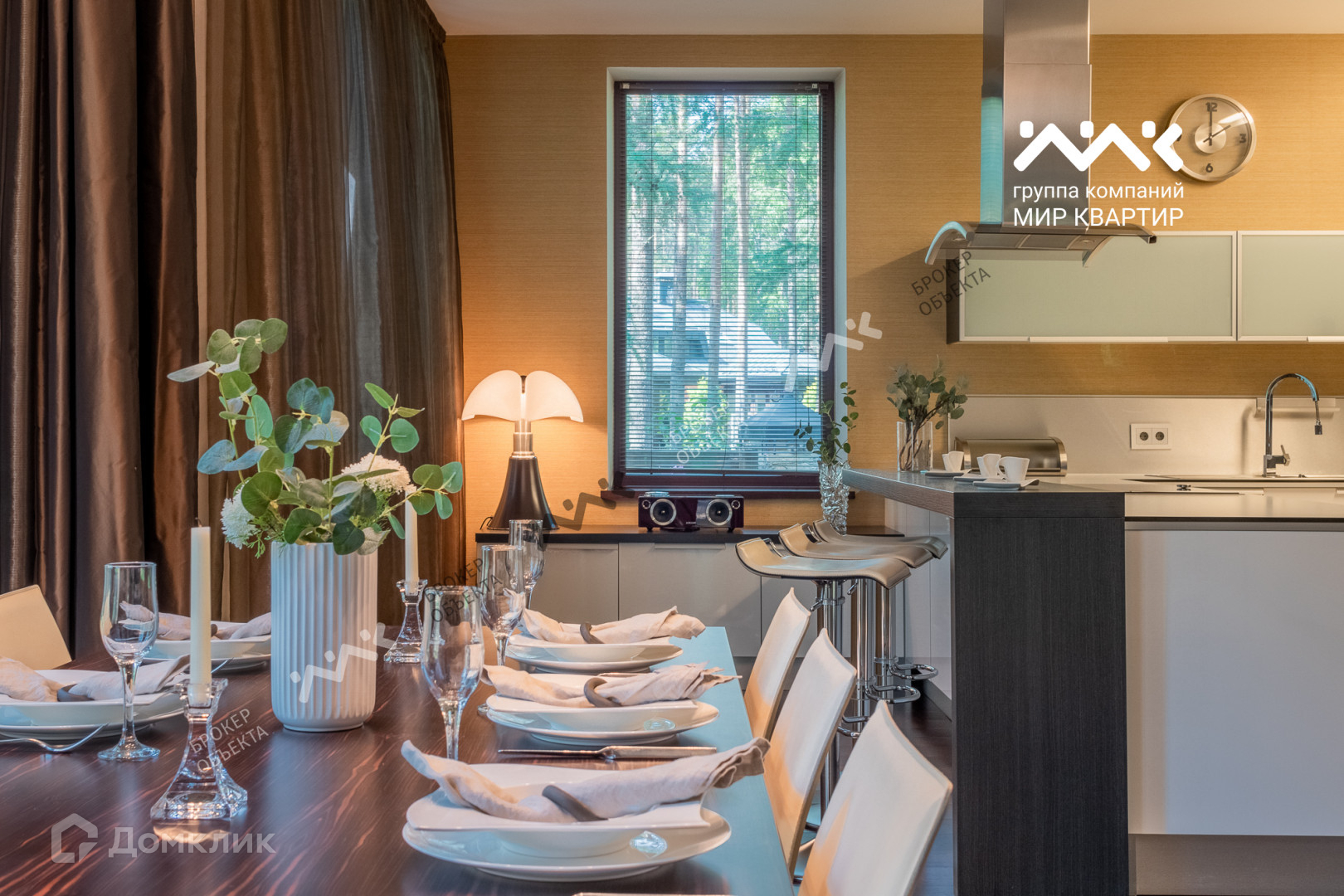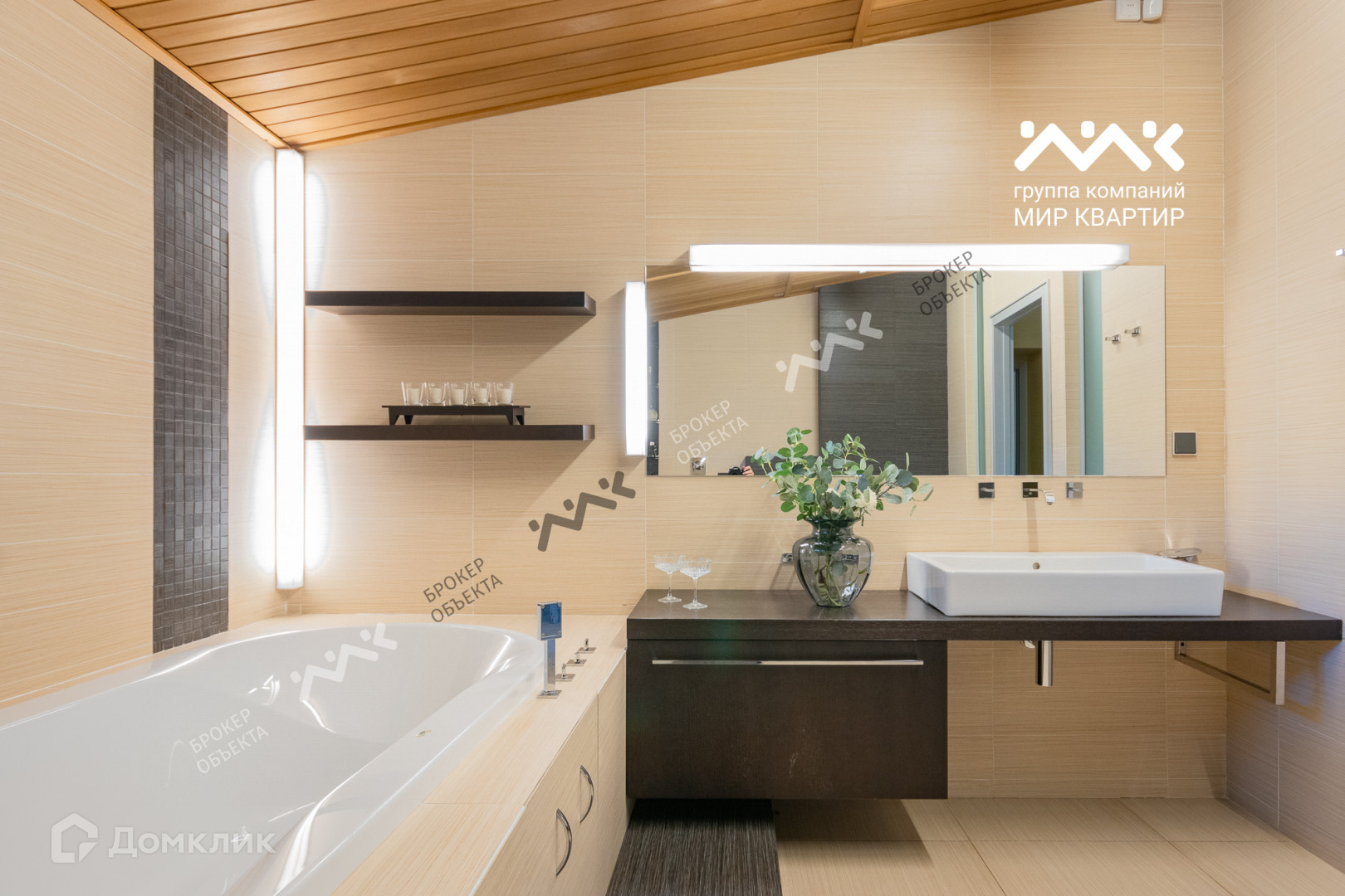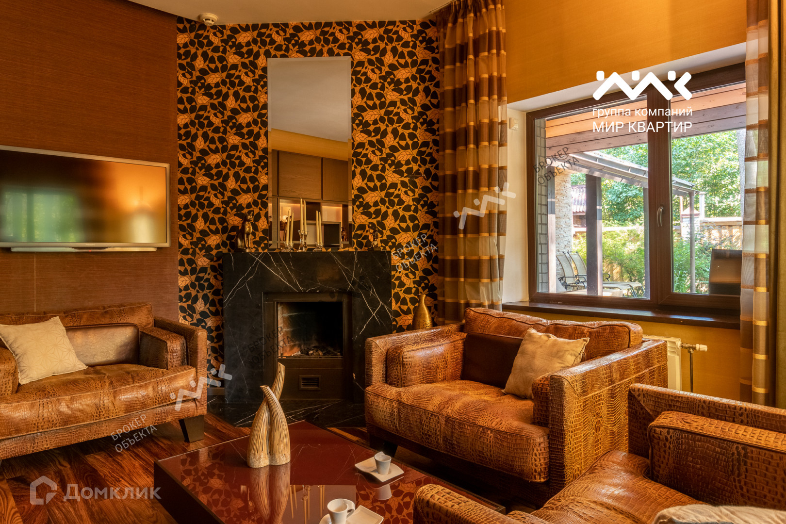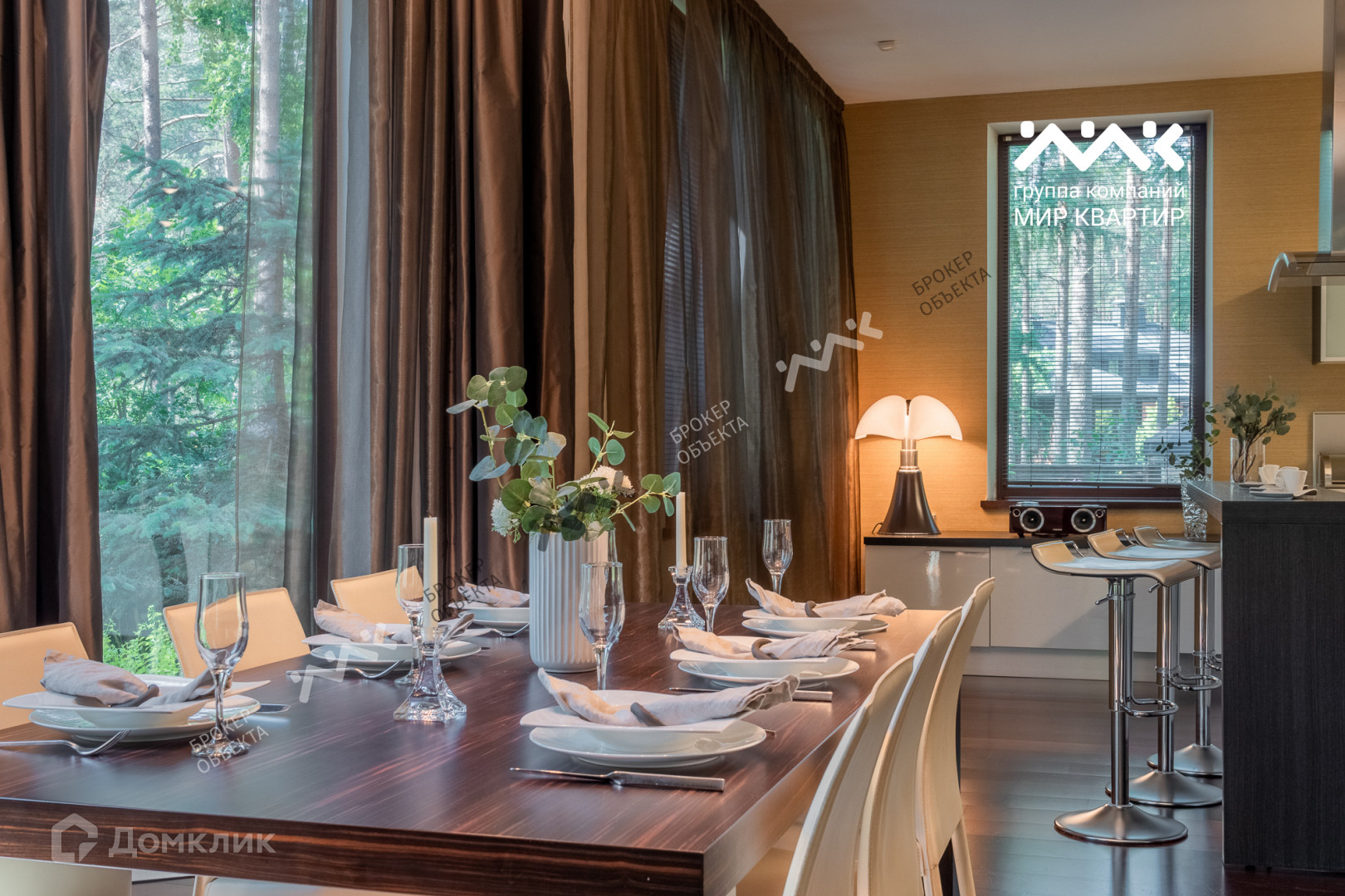 При отделке использованы мрамор, гранит, паркет, дуб-доска, установлена мебель производства Италии, техника AEG, Miele.
