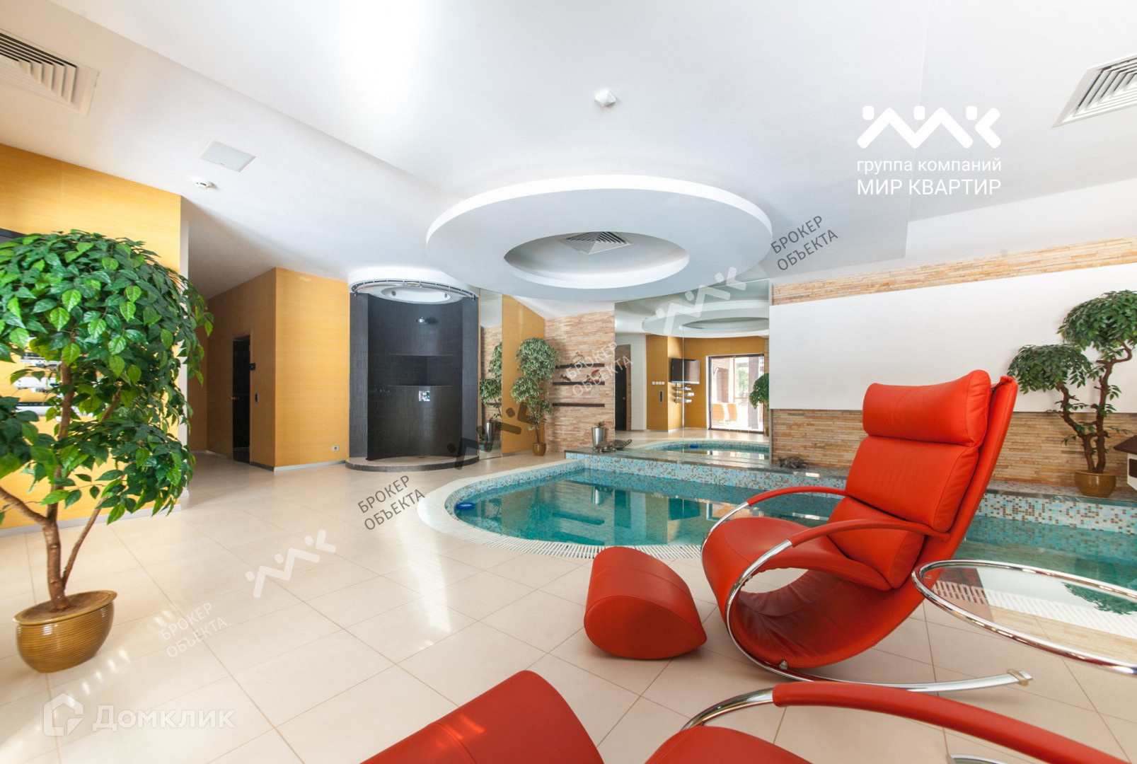 просторную кухню гостинную 65м2, две комнаты (спальня и кабинет),каминный зал, теплая терраса, спортивный зал, бассейн глубина до 1,80 м с зоной отдыха и выходом на летнюю террасу из африканского дерева, финская сауна с шведской печью элитного класса TyLo, Зона отдыха, Предусмотрены постирочная, подсобные и гардеробные помещения.