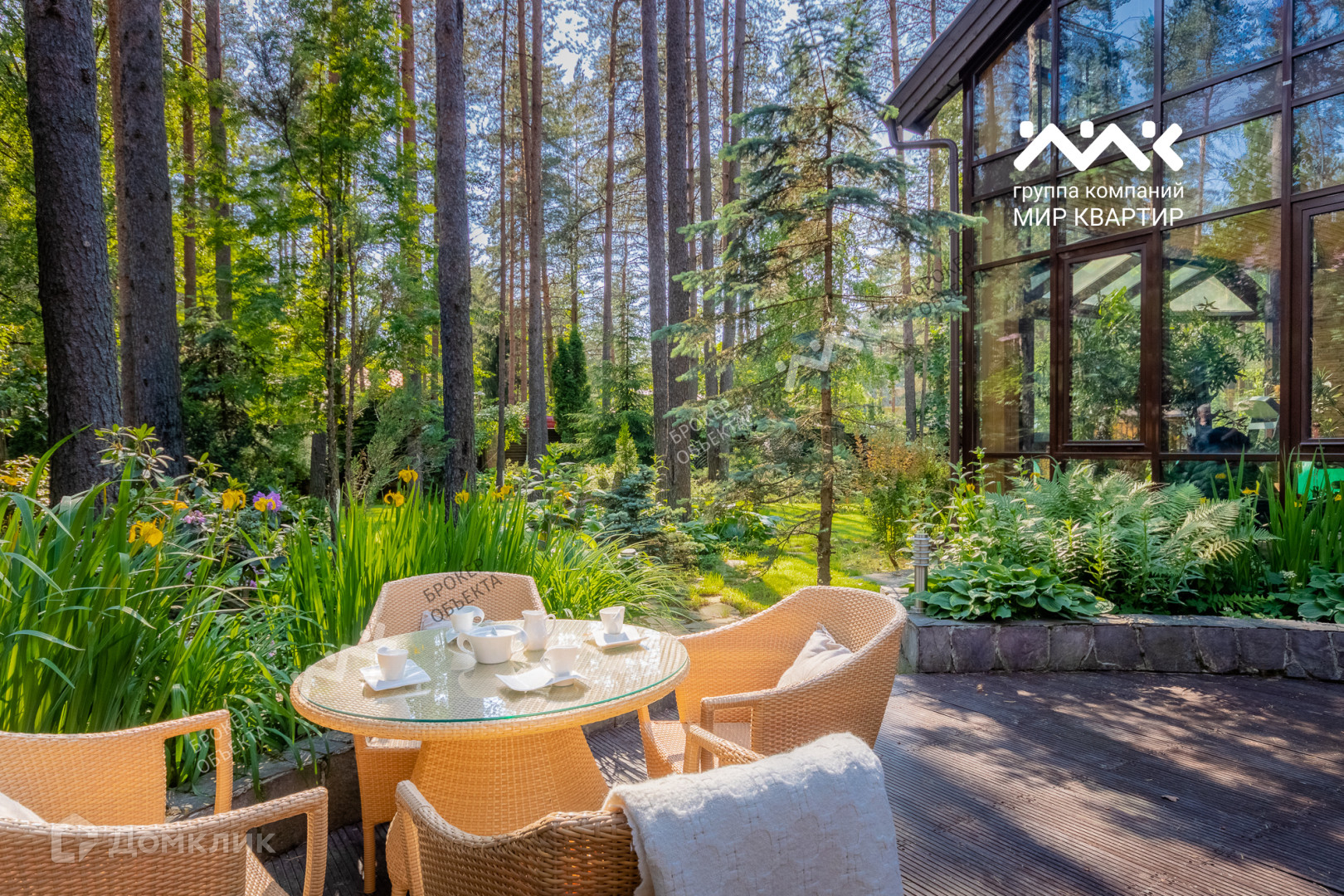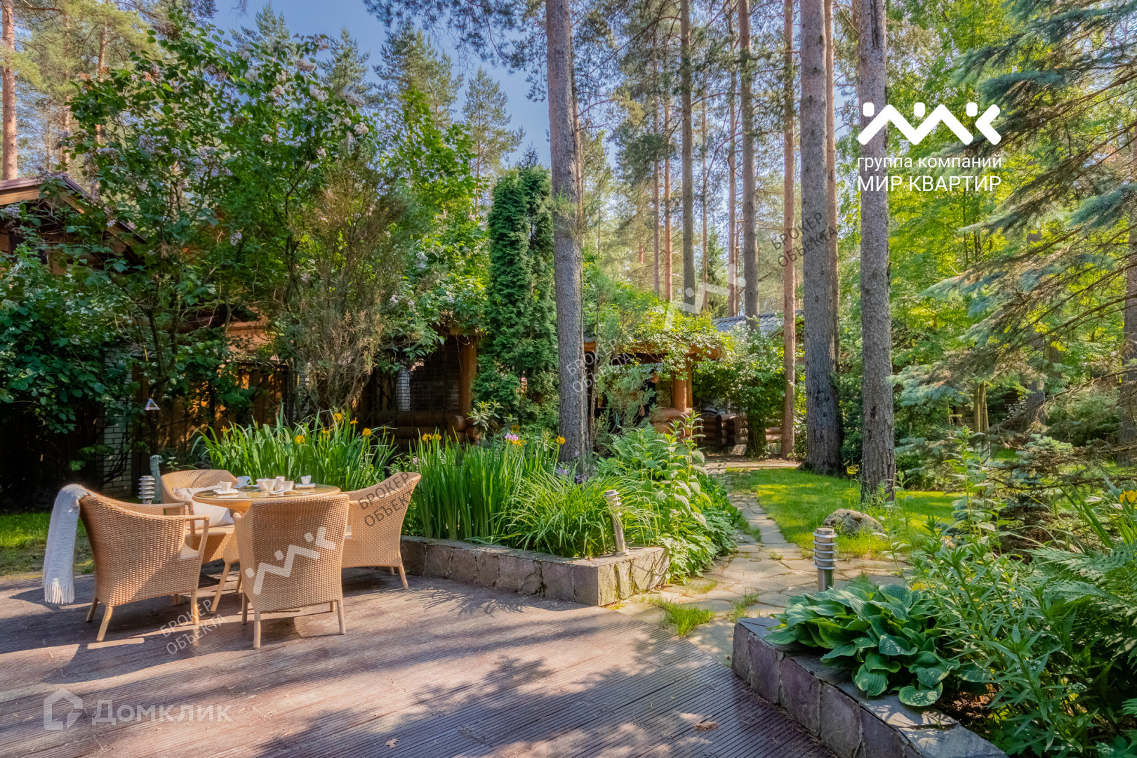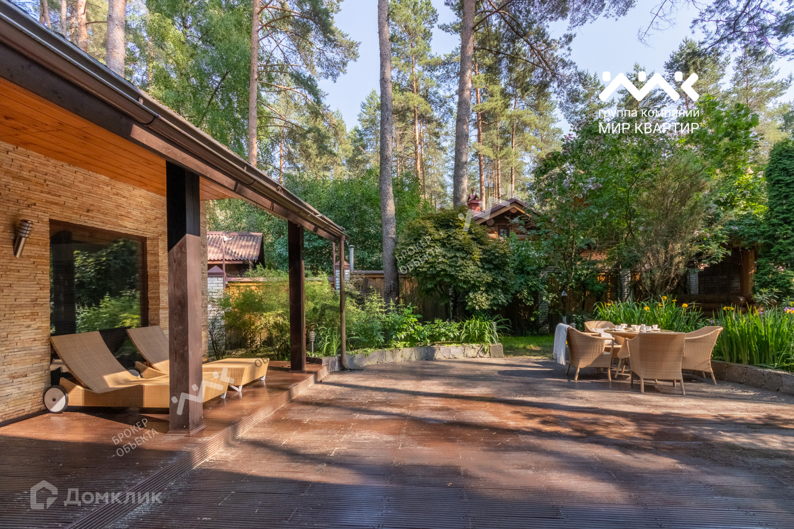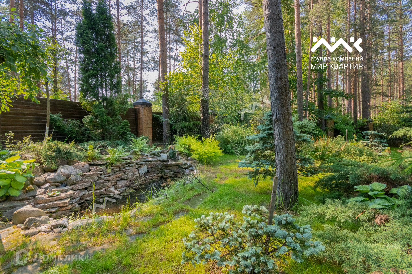 Участок огорожен забором, с автоматическими откатными воротами. Авторский ландшафтный дизайн включает в себя декоративные газоны, различные посадки деревьев, декоративные растения, альпийскую горкус прудиком, интерьерные светильники обрамляют дорожки, выложенные натуральным песчаником, Архитектурное решение участка состоит из нескольких зданий: особняк в двух уровнях и террасой в современном стиле, беседка из кругляка с зоной барбекю и патио, русская баня!