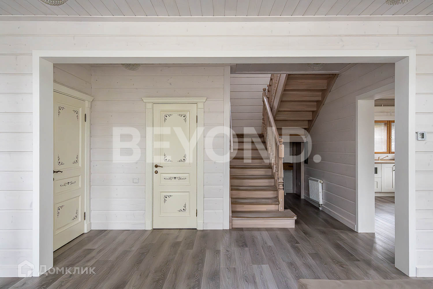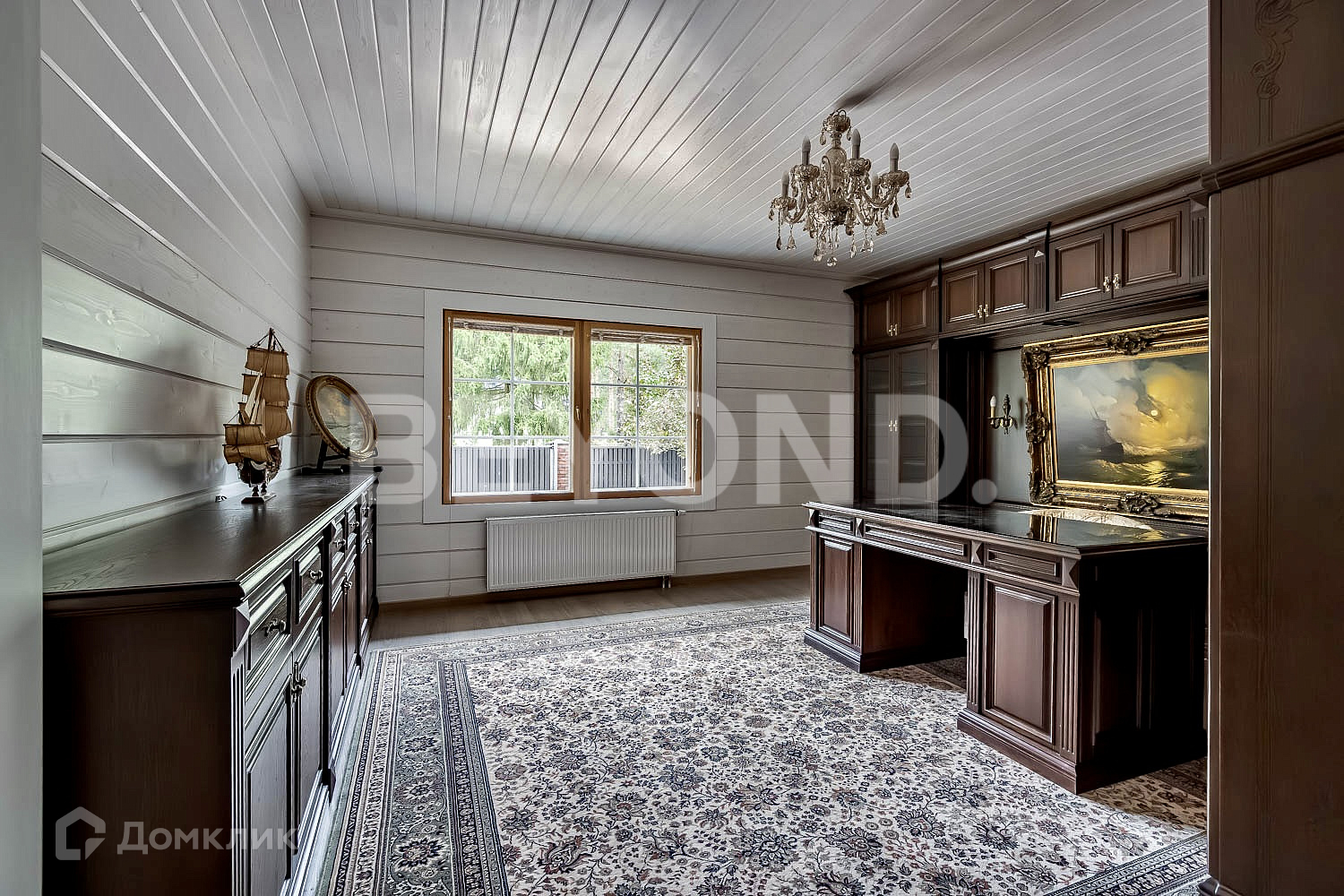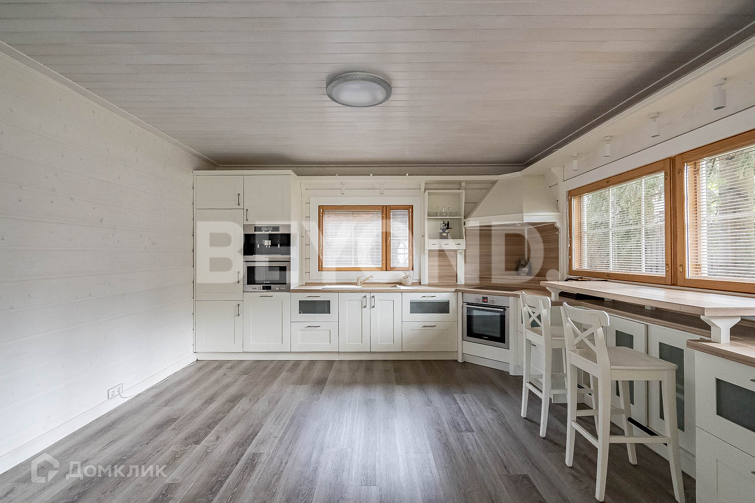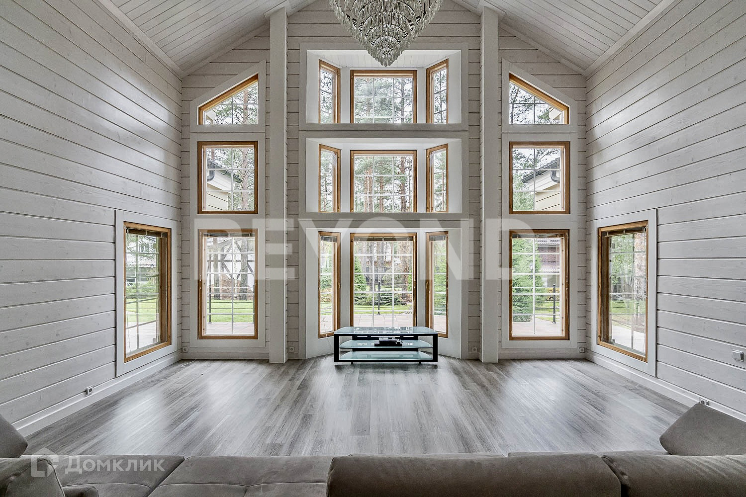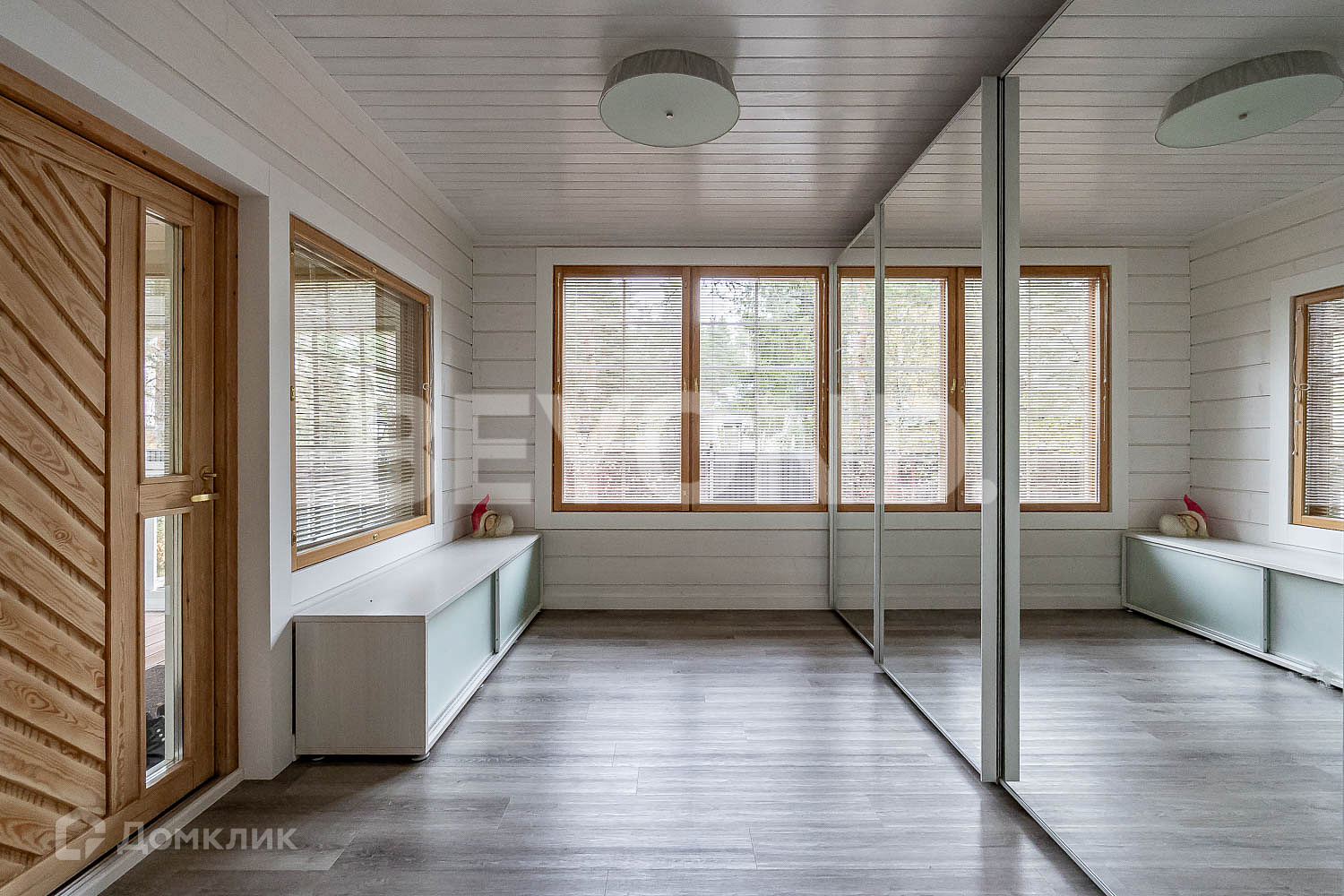 Основной дом - HONKA с панорамным финским остеклением, общей площадью 215.5 кв. м, имеет два этажа, где расположились 4 спальни, гардеробная комната, 2 санузла, кабинет, гостиная со вторым светом, кухня и столовая зона с выходом на крытую террасу - 12 кв. м.
