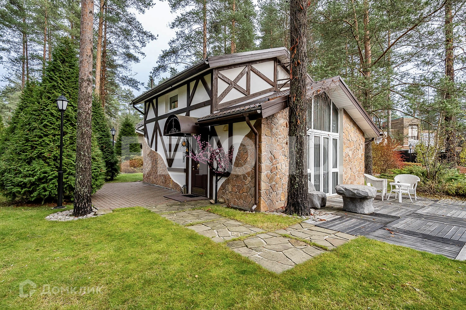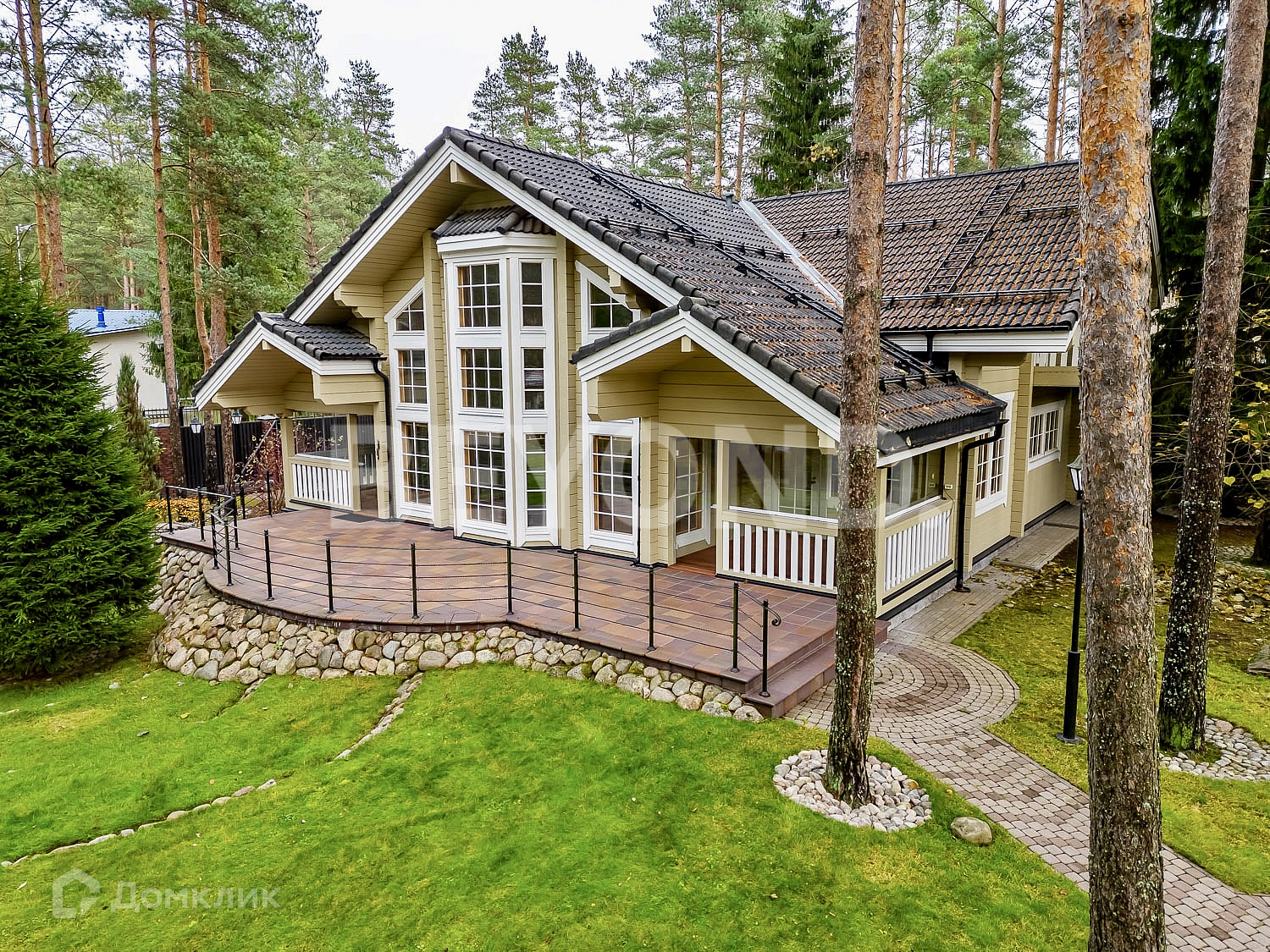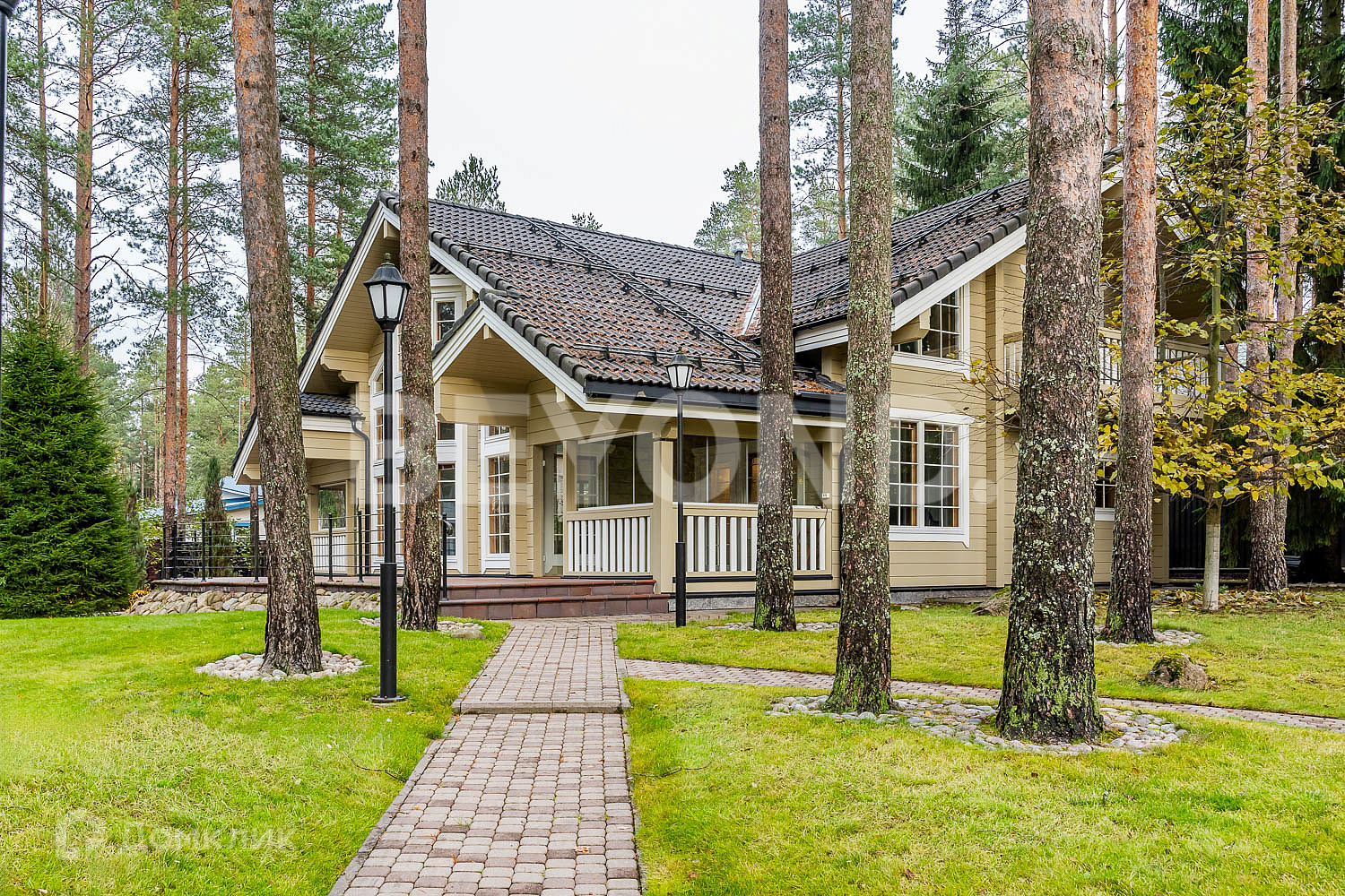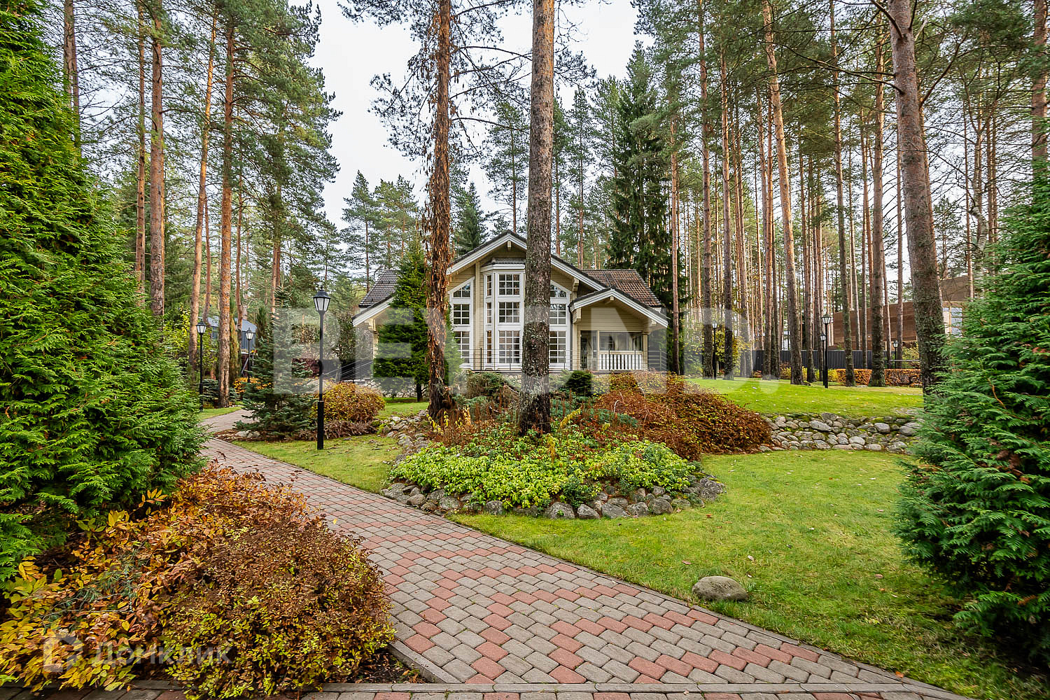 Ухоженный участок с многочисленными соснами имеет ландшафтный дизайн, освещение, мощение дорожек и уличной террасы для летней мебели. Сделана разводка и выводы для полива.