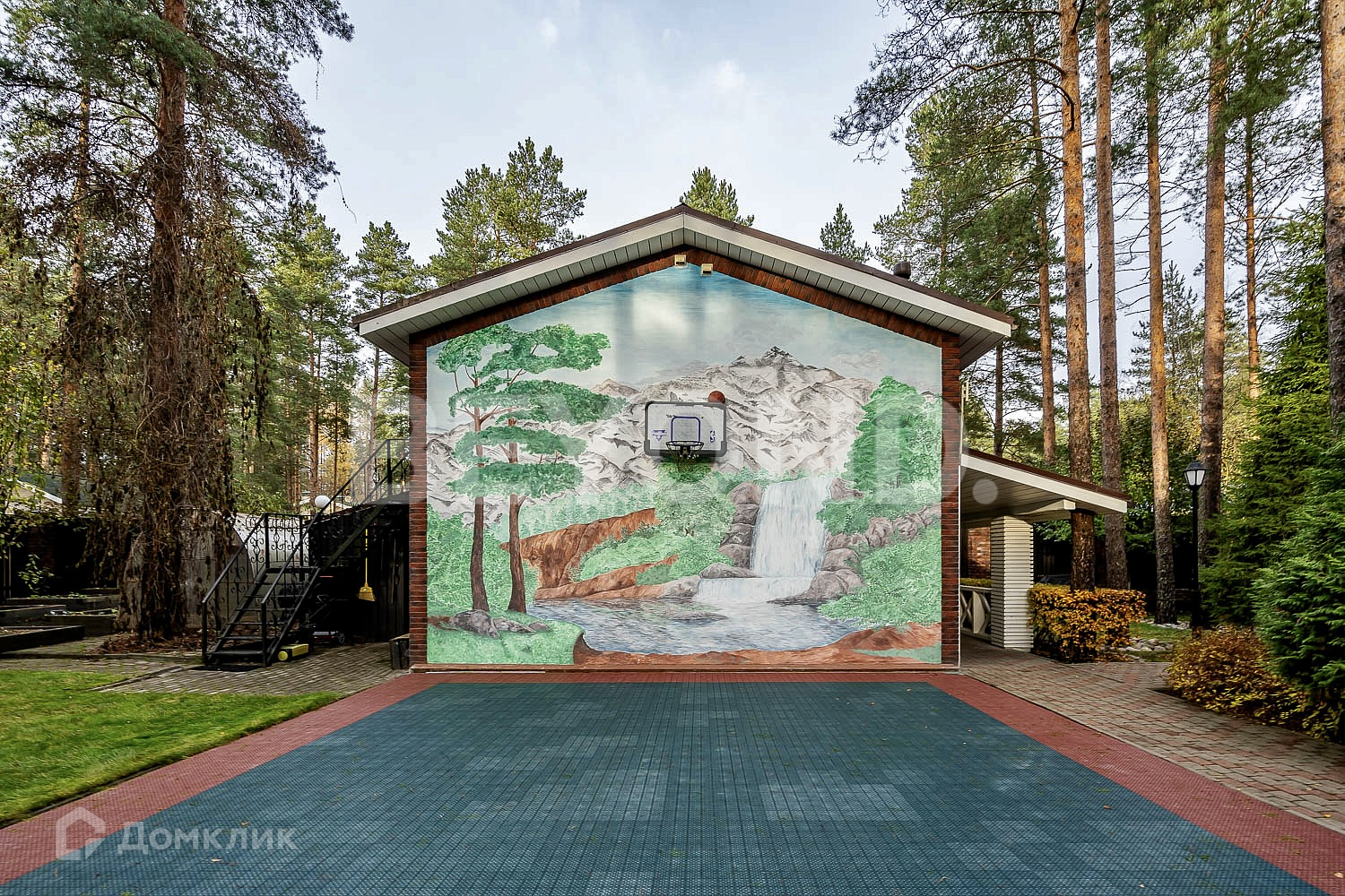 Гостевой двухэтажный дом – 90 кв. м, спортивный комплекс с сауной и купелью – 100 кв. м, отапливаемый гараж на две машины со вторым этажом для проживания персонала – 120 кв. м. Зона барбекю. На территории – детская площадка для игры в баскетбол.