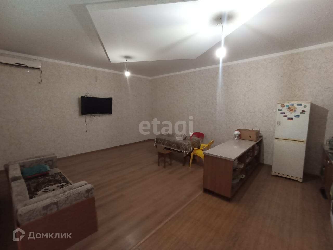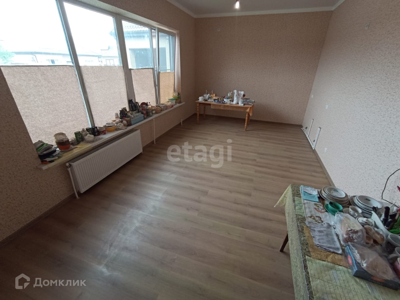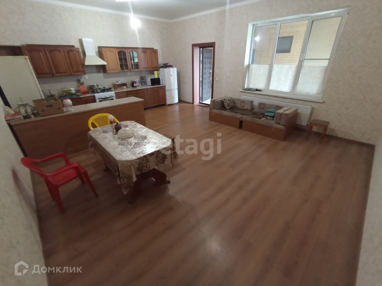 В доме три комнаты, гостиная, большая просторная кухня.
