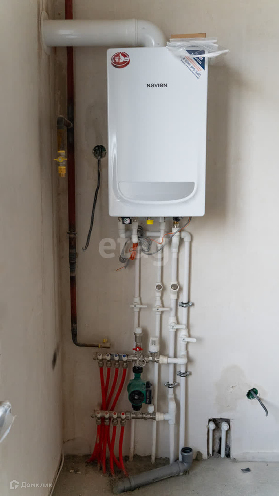 Центральные коммуникации заведены в дом; газ, водопровод, свет. Теплые полы везде кроме спален. Высота окон 1,8м.