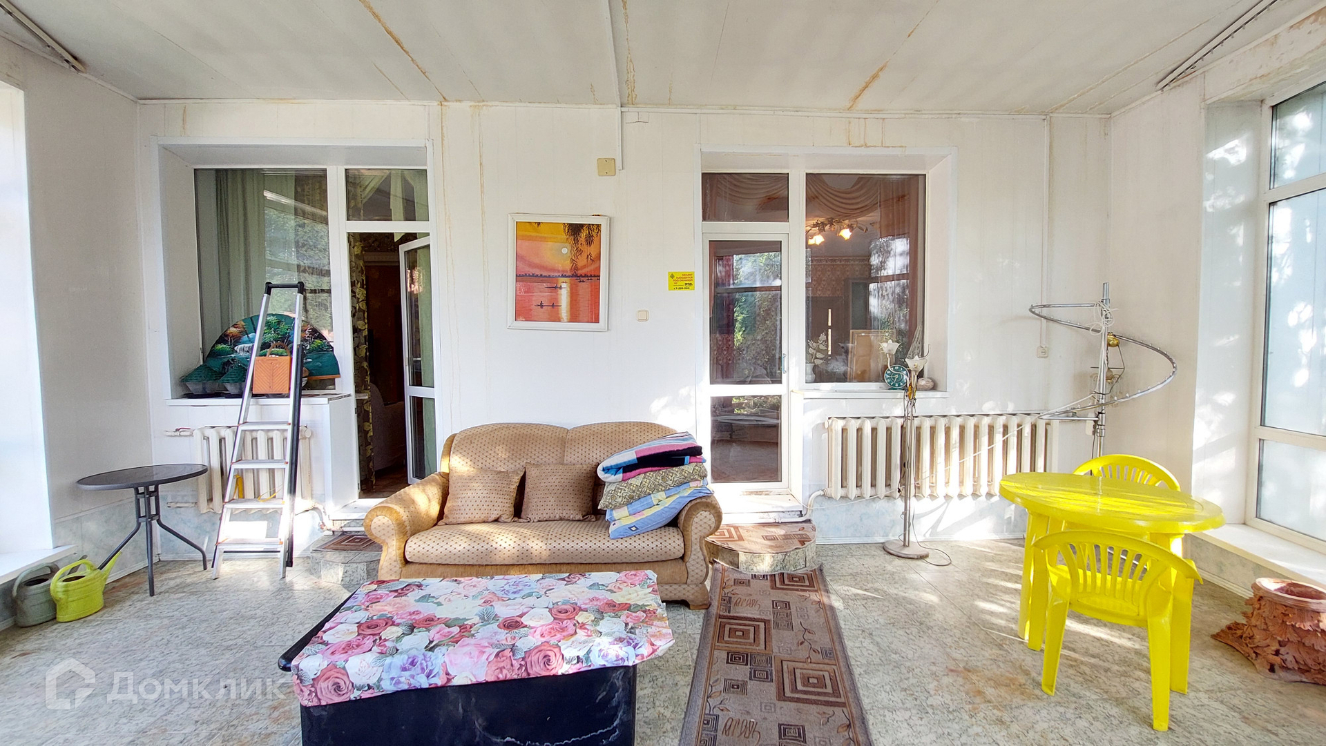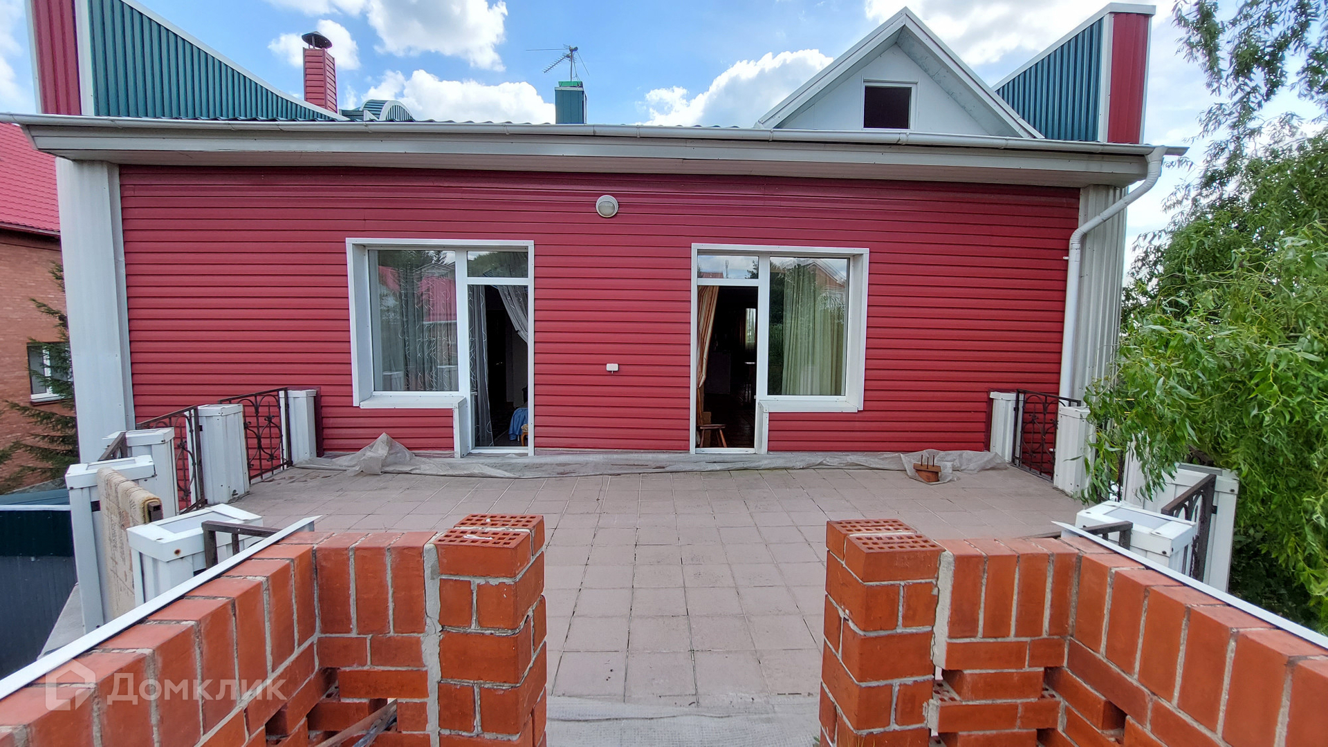 Участок огорожен высоким забором, на территории есть летняя веранда, есть выравненная площадка с твердым покрытием, можно установить летний бассейн, шатер, столы, использовать для мероприятий.