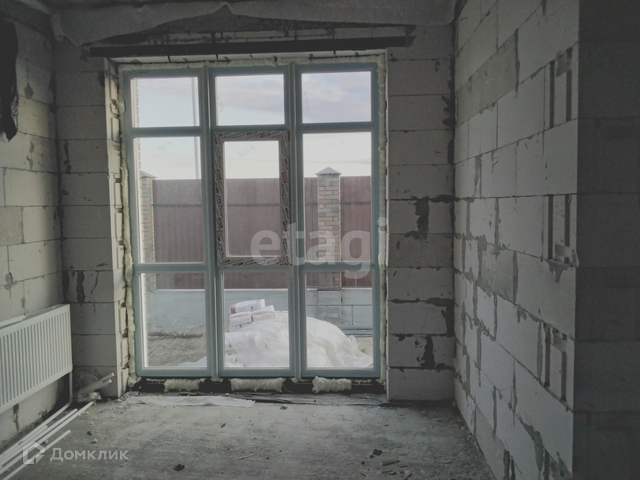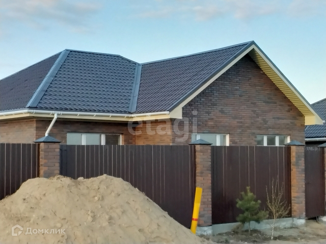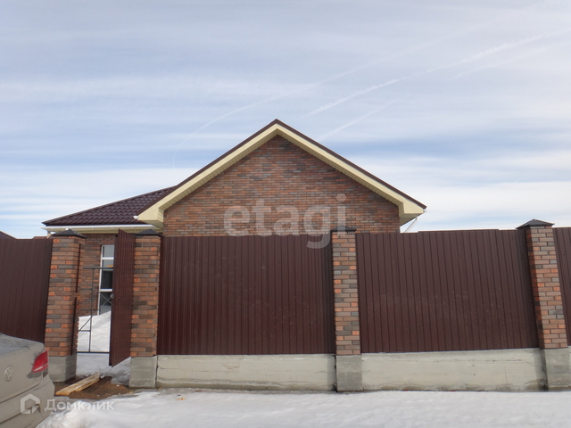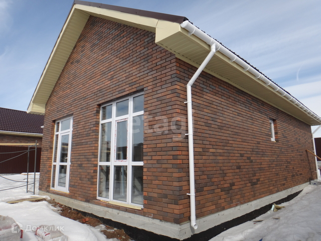 Дом общей площадью 105,6 кв.м., фундамент свайно-ленточный глубина свай 2,20, стены инсиблок 300, облицовочный кирпич, кровля металлочерепица, построен с соблюдением всех технологий. Планировка студия + 3 комнаты, санузел совмещен. Имеется газ, установлен газовый котел, радиаторы, трехкамерные стекло пакеты, электричество до счетчика, выгребная яма, скважина 80 метров, отделка черновая (вариант пред чистовой и чистовой обсуждается).