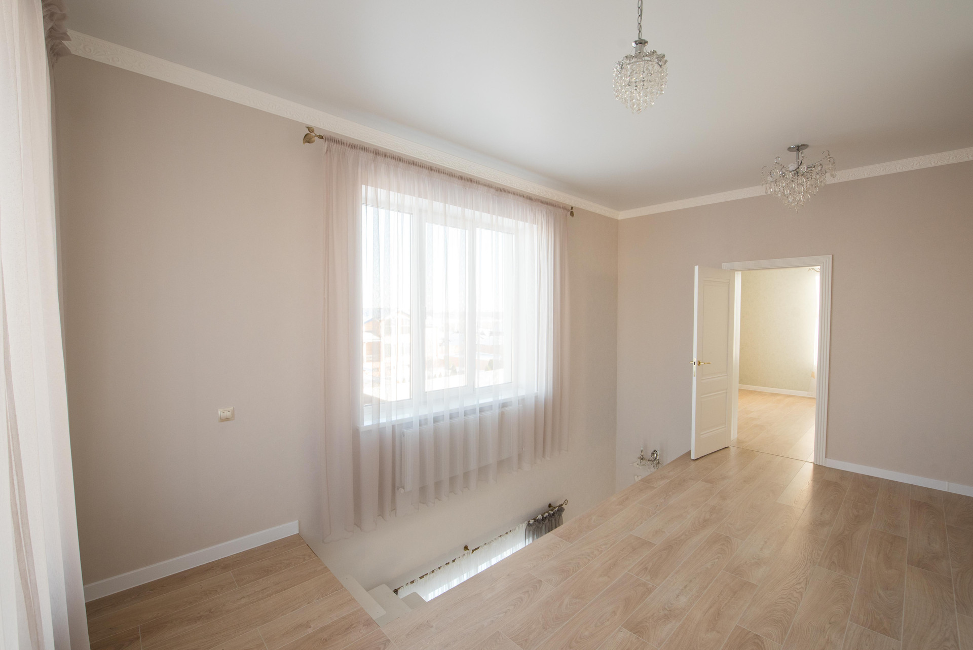 Отделка полностью чистовая. Осталось укомплектовать дом мебелью. Из окон открывается вид на Шершни.