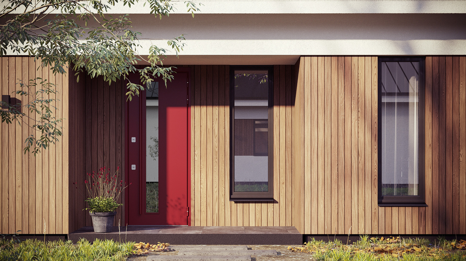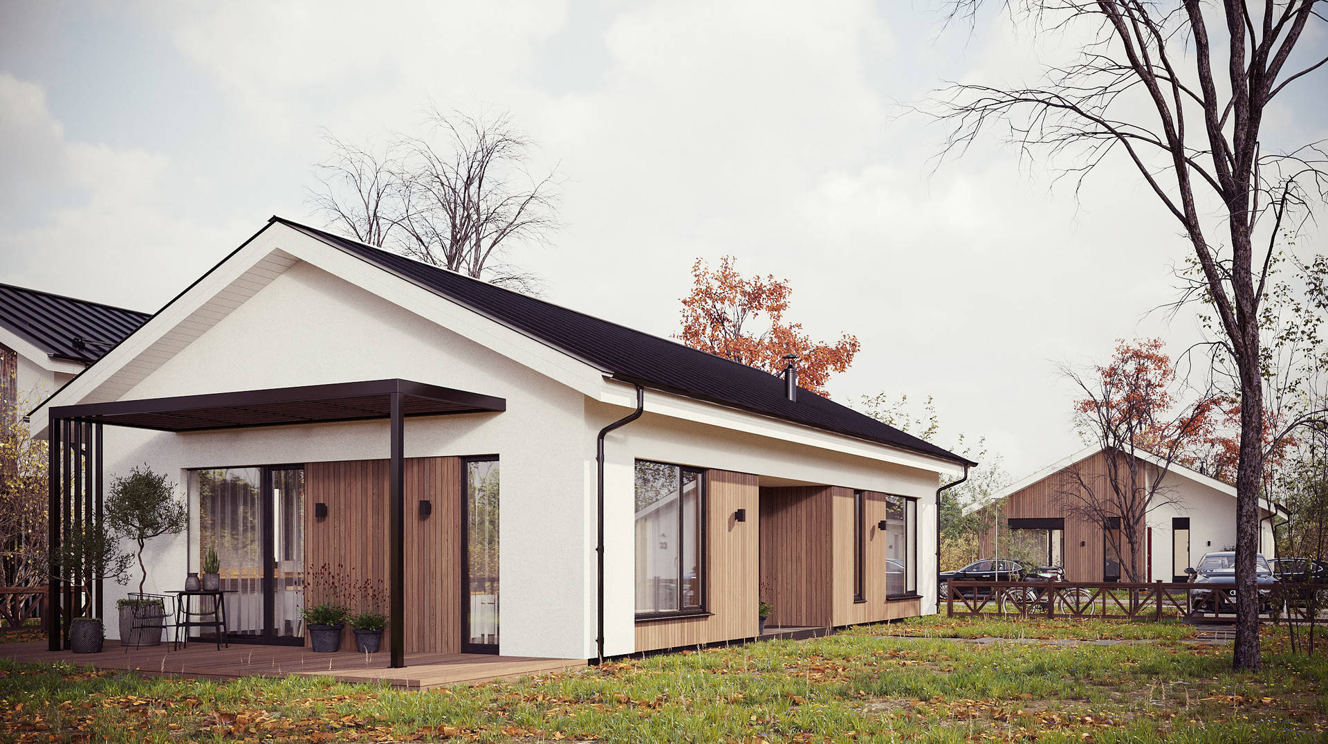 Внешняя отделка: штукатурка, дерево