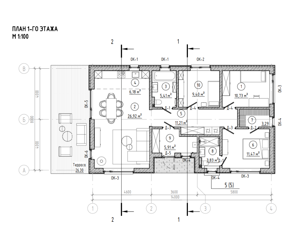 Площадь террасы: 26,3 м2